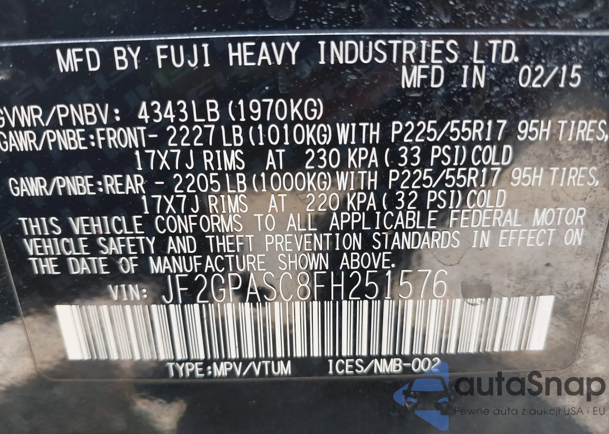 • VIN JF2GPACC5D1862816