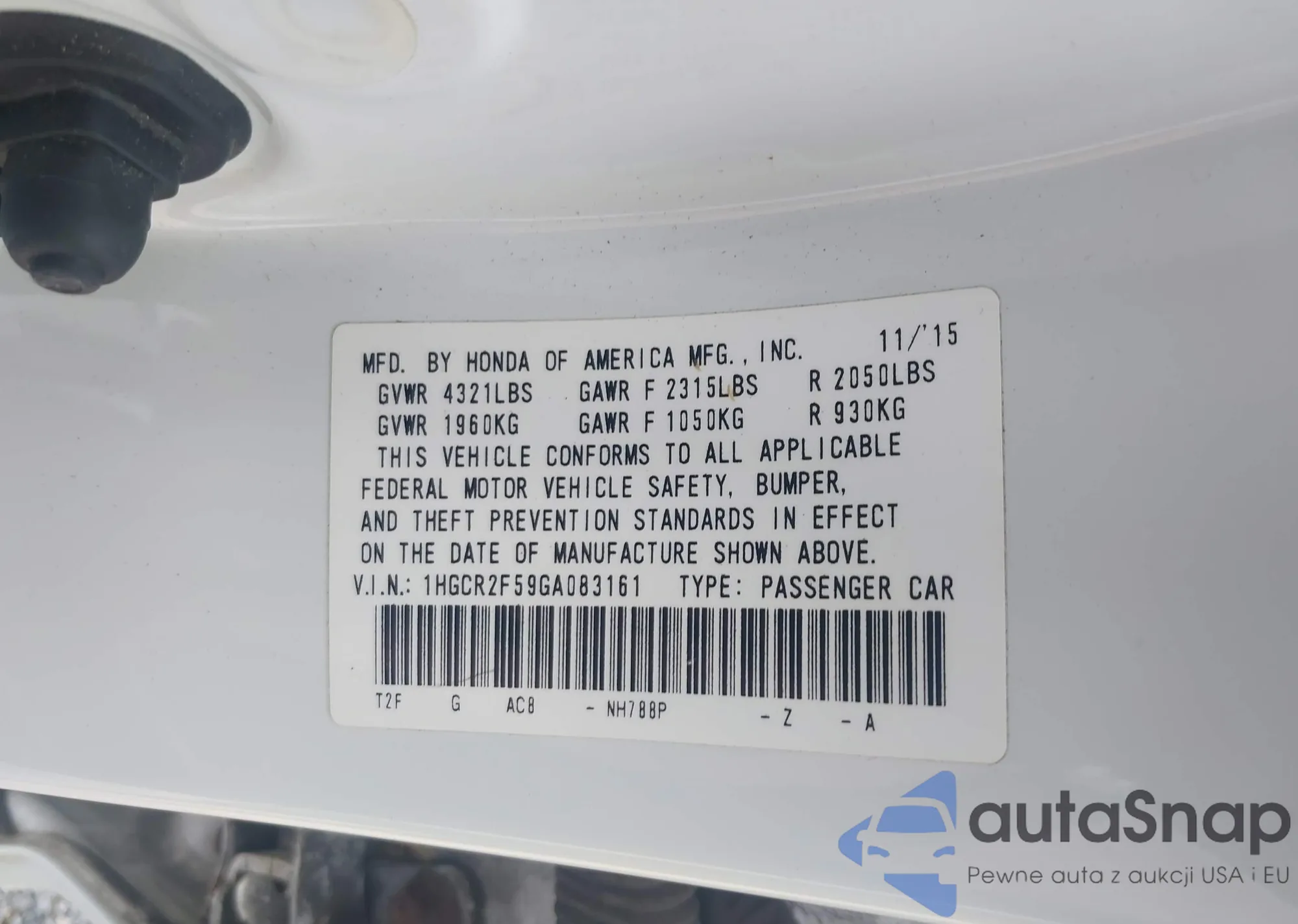 • VIN 1HGCR2F59GA083161