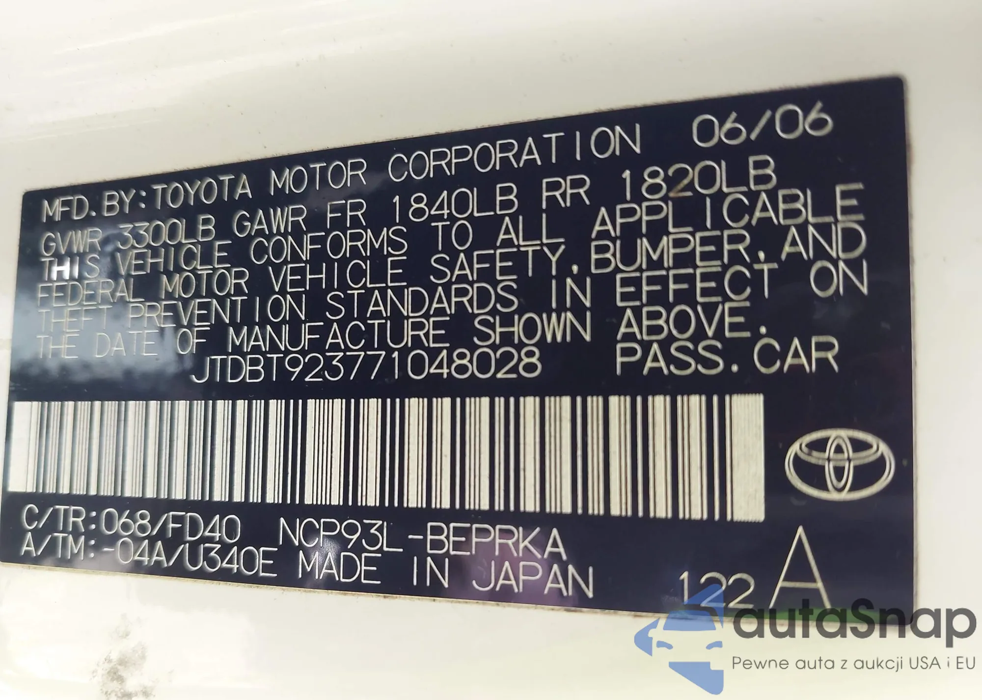 LOT: 42300981 VIN: JTDBT923771048028