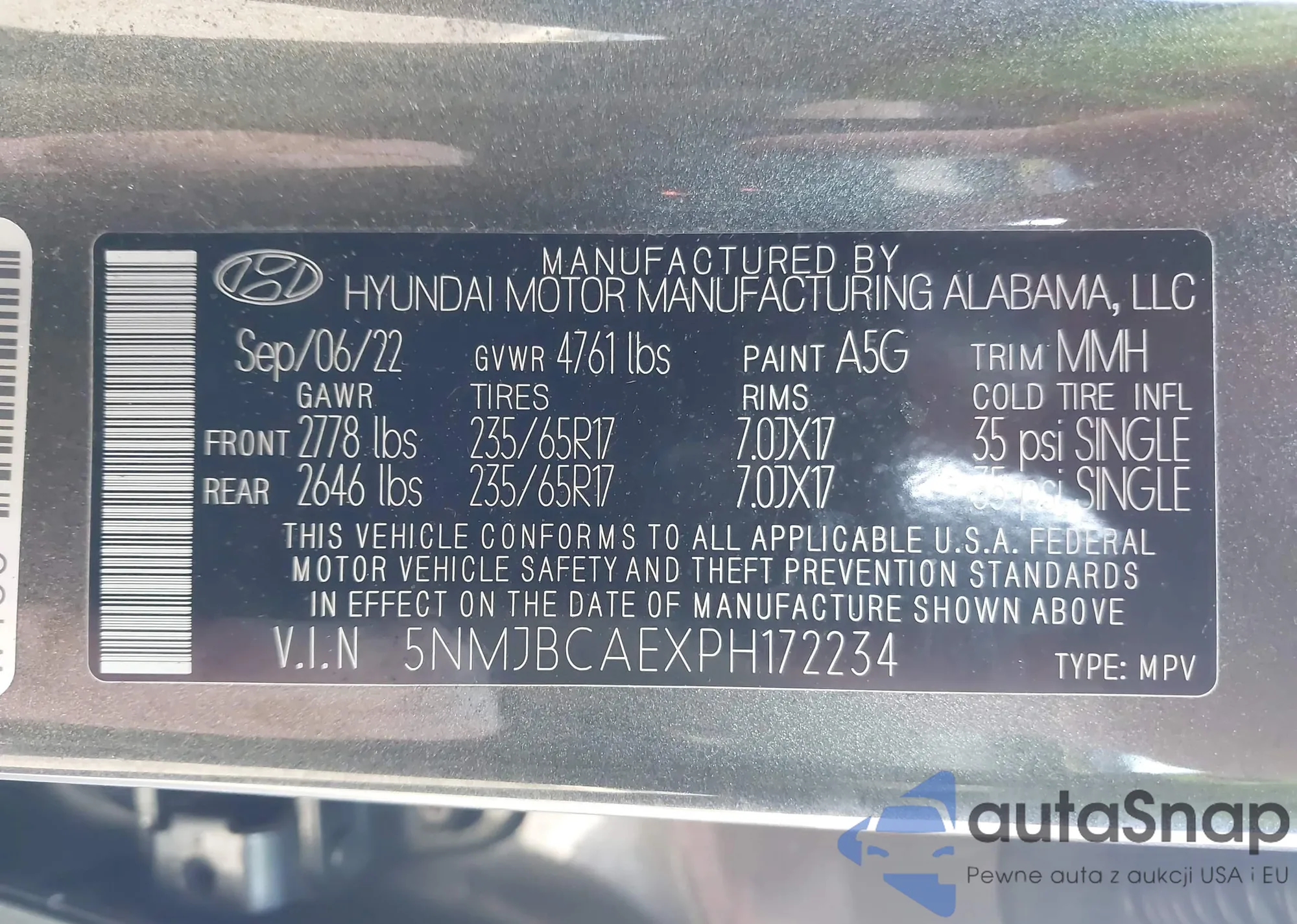 • VIN 5XYZUDLA2DG090856