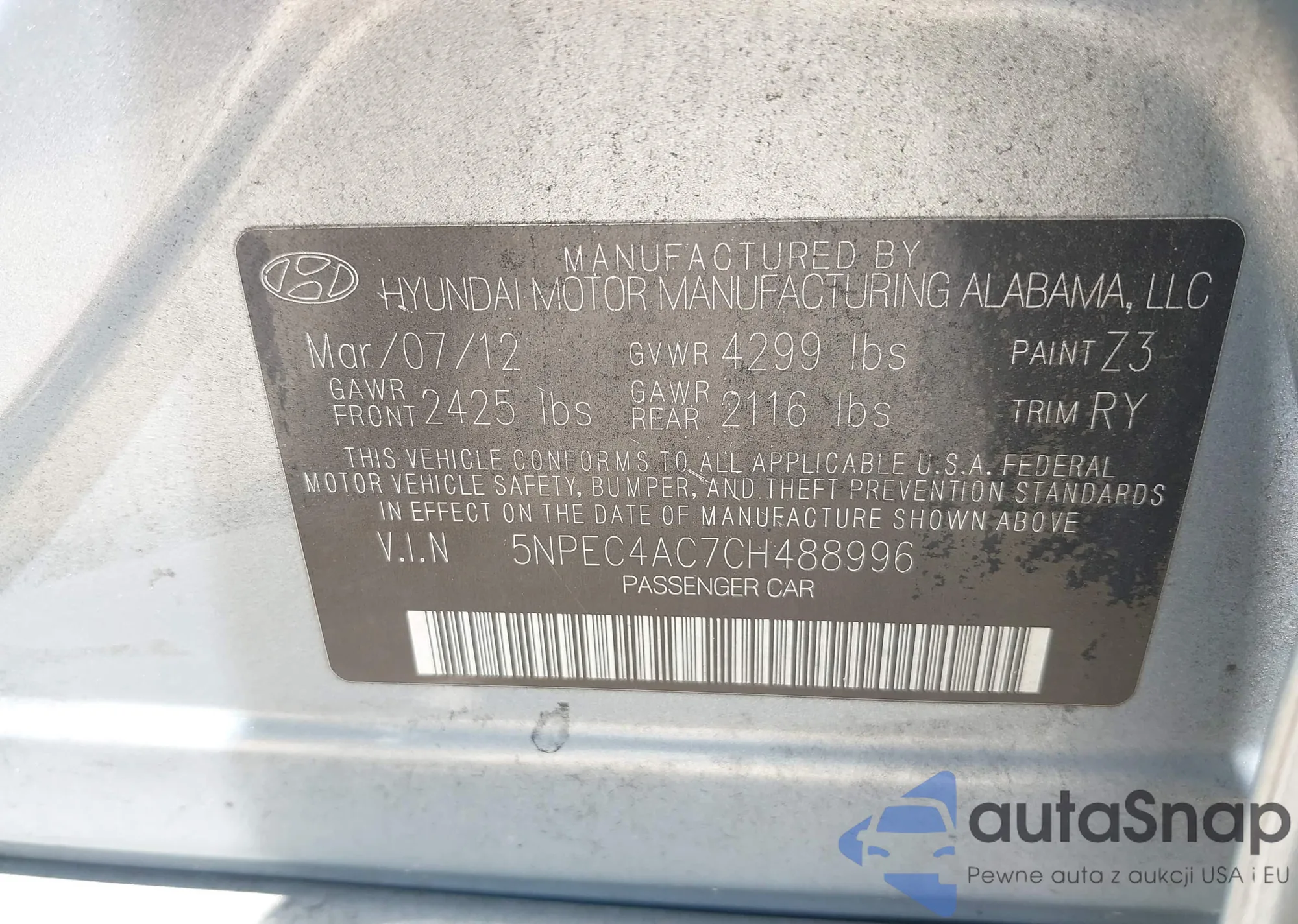 • VIN 5NPEC4AC7CH488996