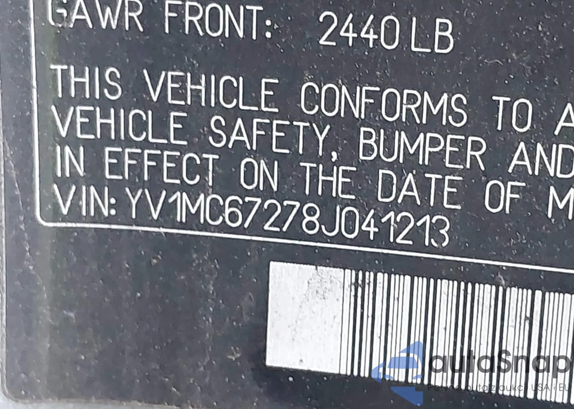 • VIN YV1MC67278J041213