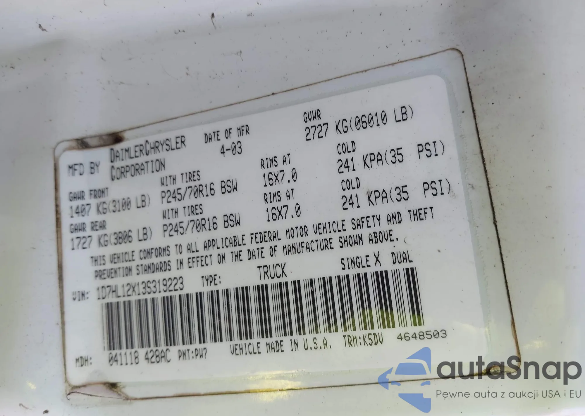 LOT: 42492920 VIN: 1J4GL48K75W614402