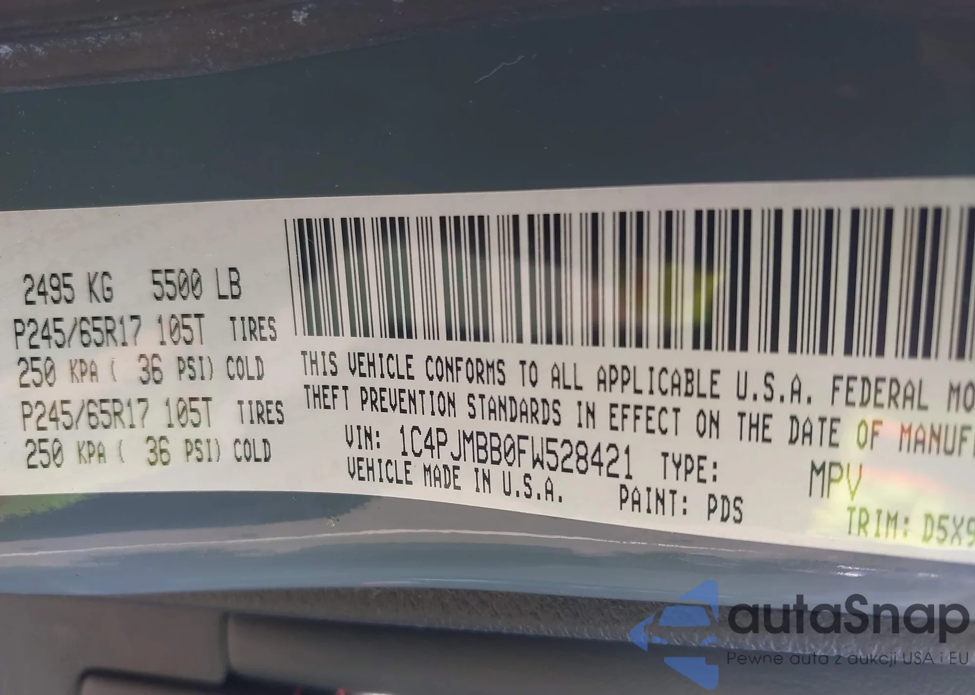 • VIN 1C4PJMBB0FW528421