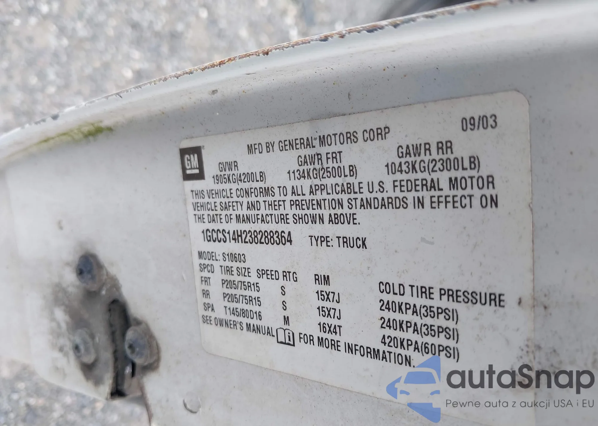 LOT: 42625930 VIN: 1GCCS14H238288364