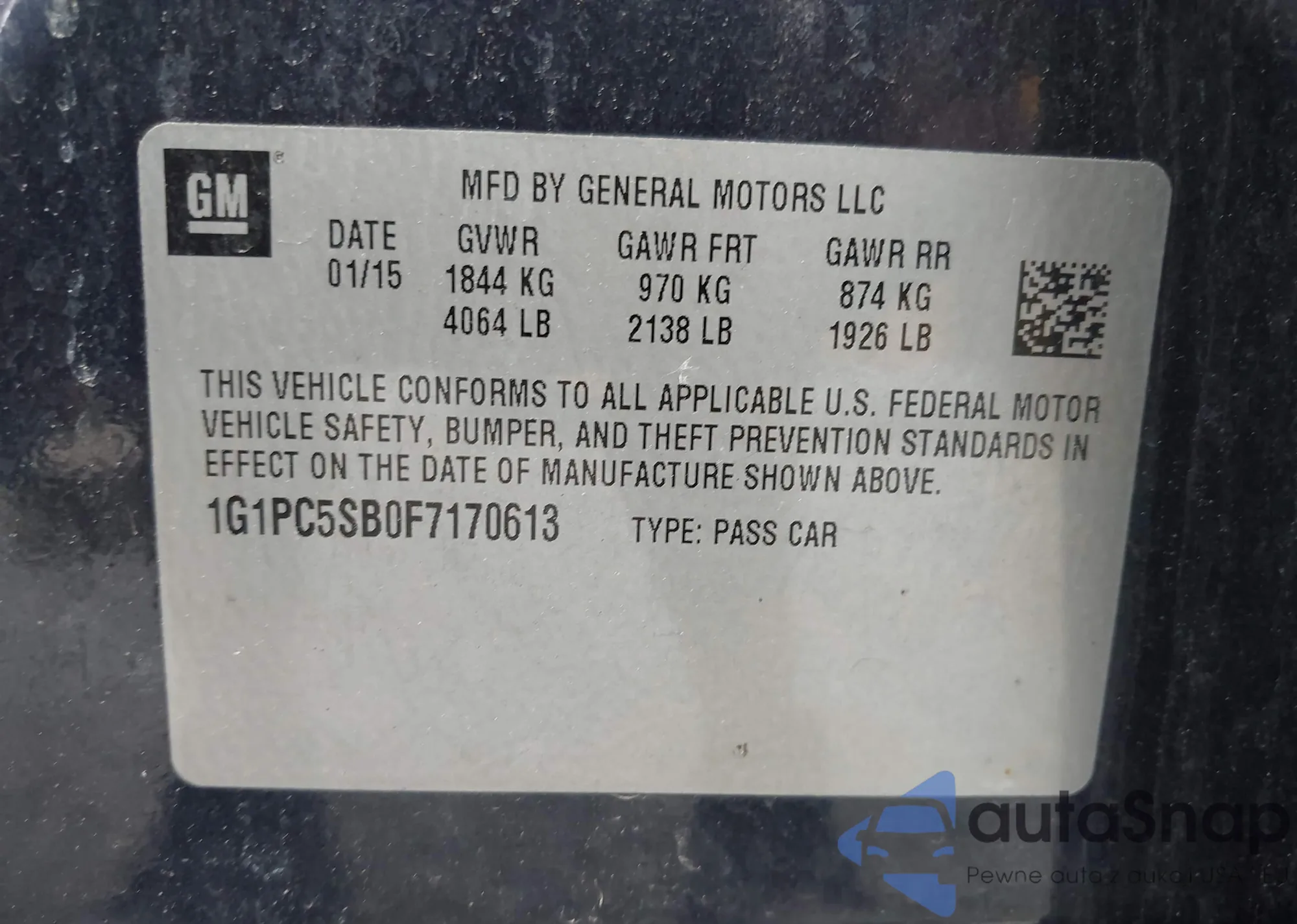 LOT: 42627034 VIN: 1G1PC5SB0F7170613