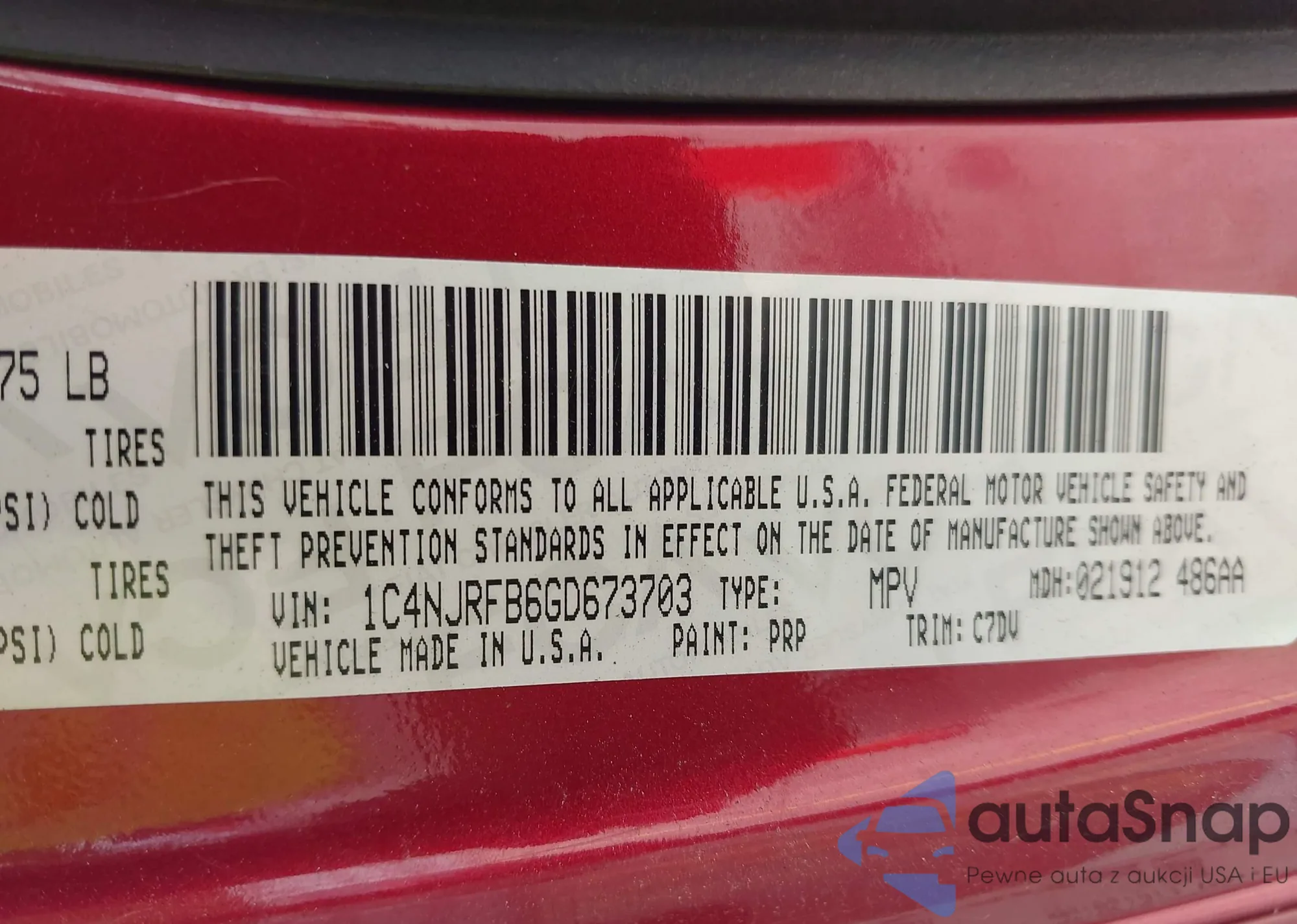 LOT: 42694735 VIN: 1C4NJRFB6GD673703