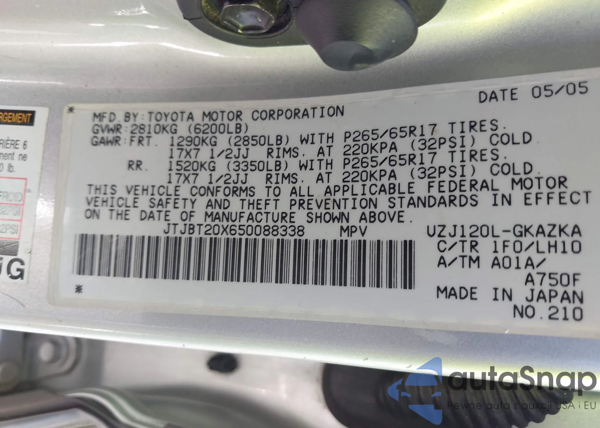 • VIN JTJBT20X650088338
