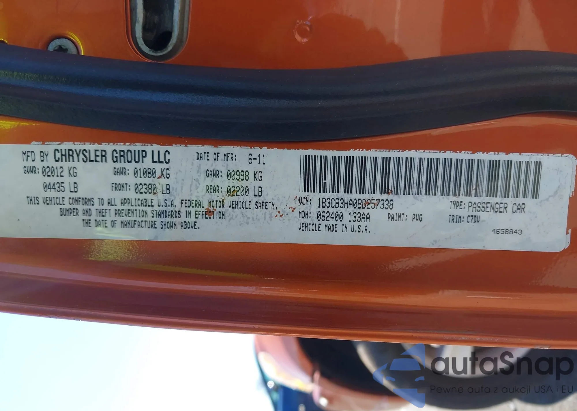 • VIN JF2SHADC9BH758484