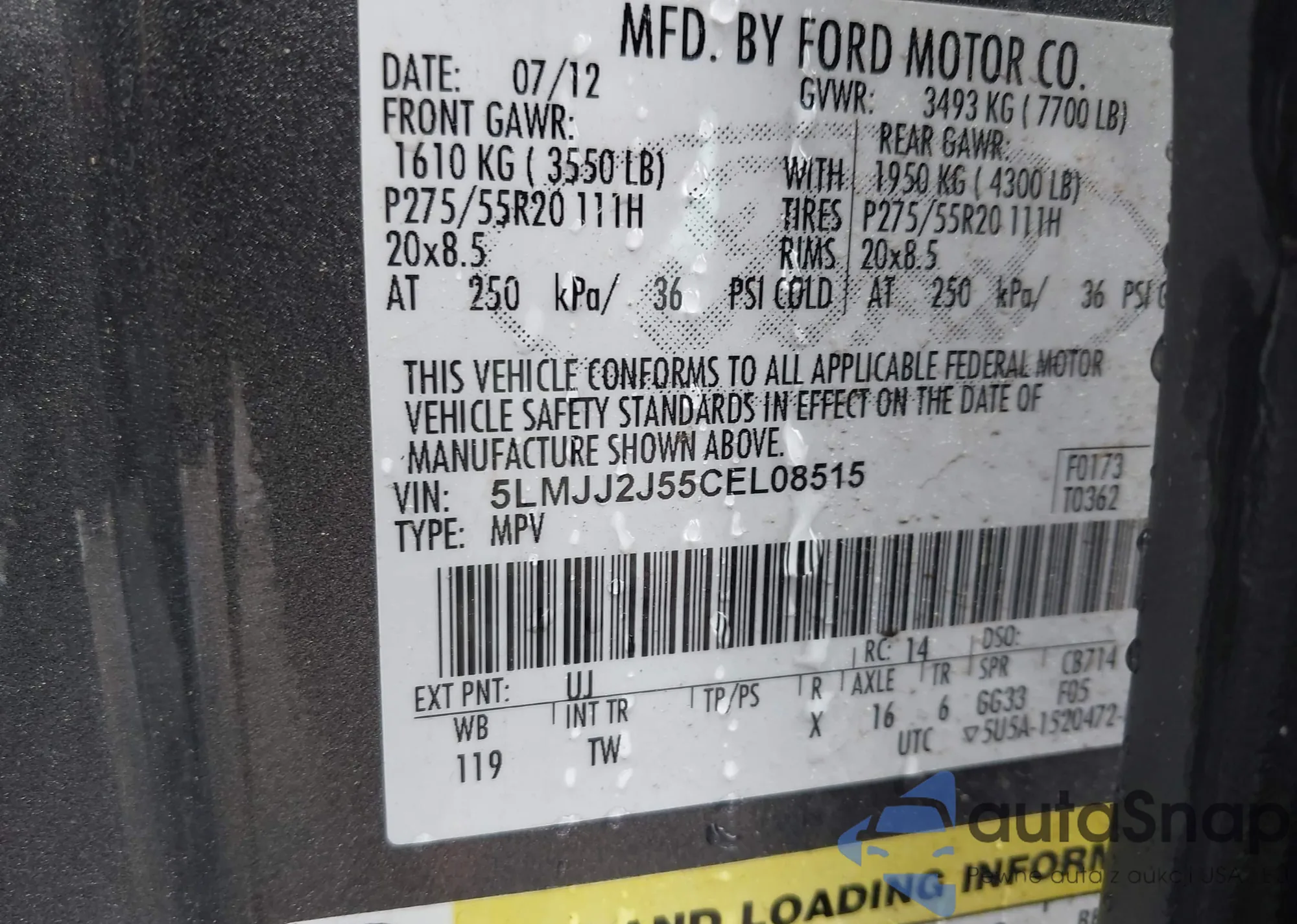 • VIN 5LMJJ2J55CEL08515