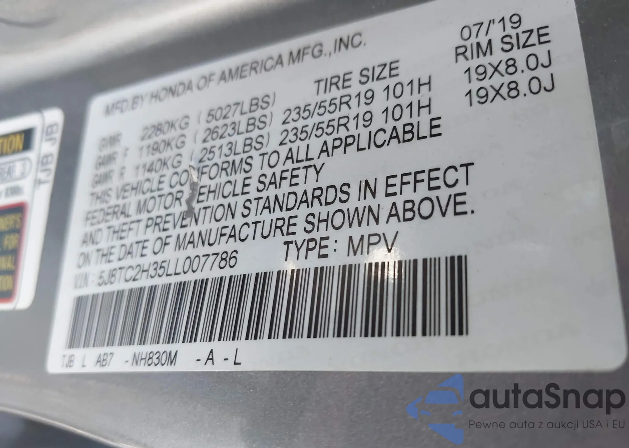 • VIN 5J8TC2H35LL007786