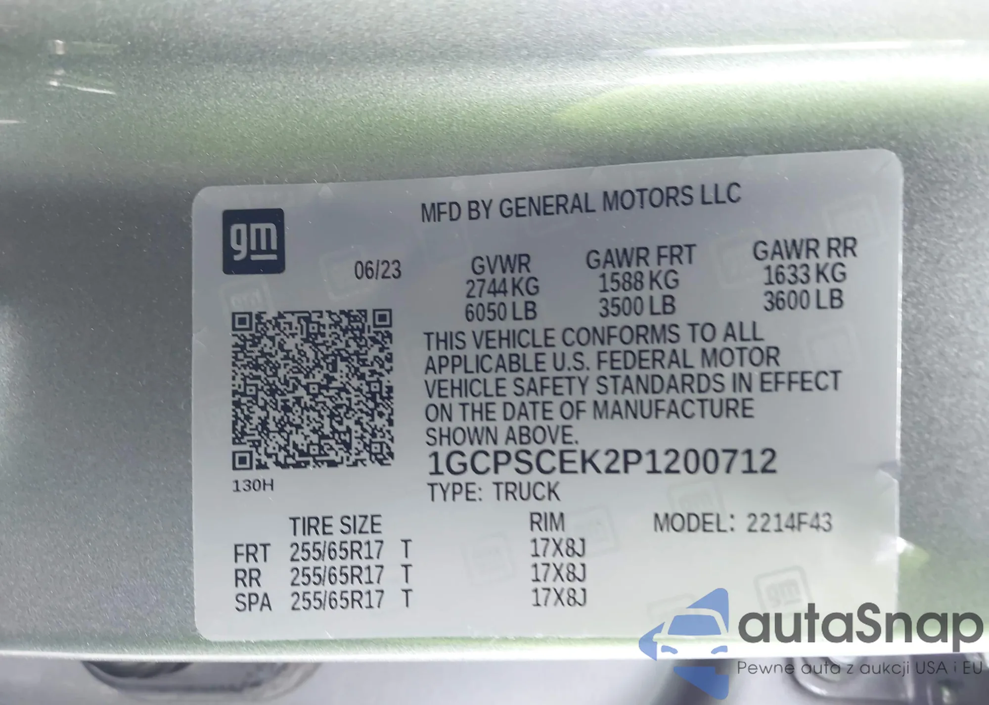 LOT: 41909173 VIN: WA14AAFY2P2106007