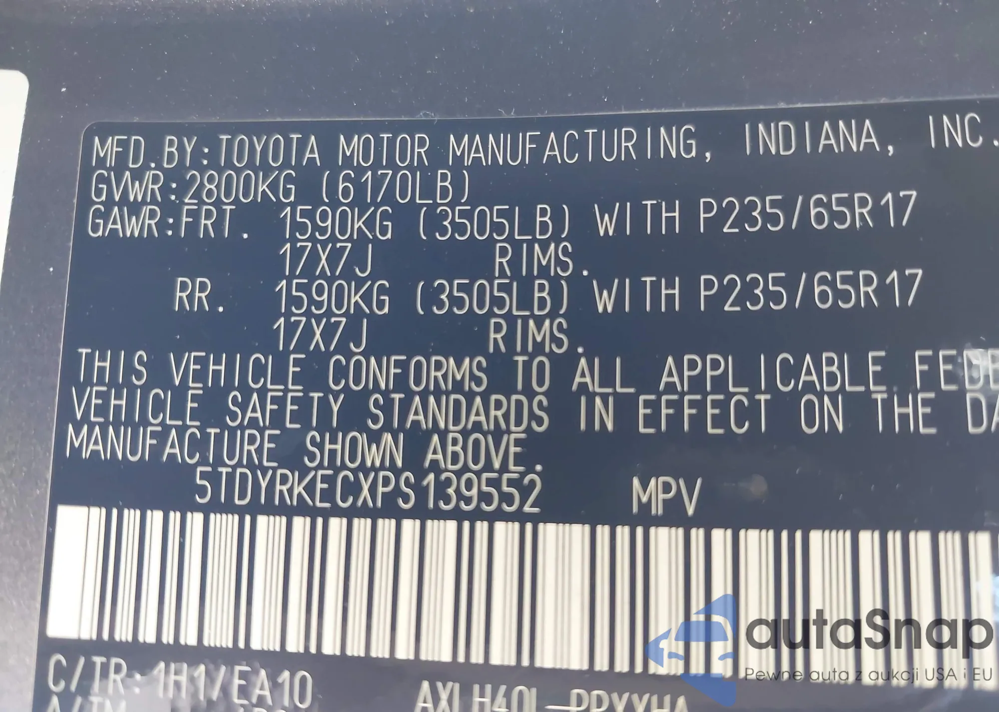 • VIN 5TDYRKECXPS139552