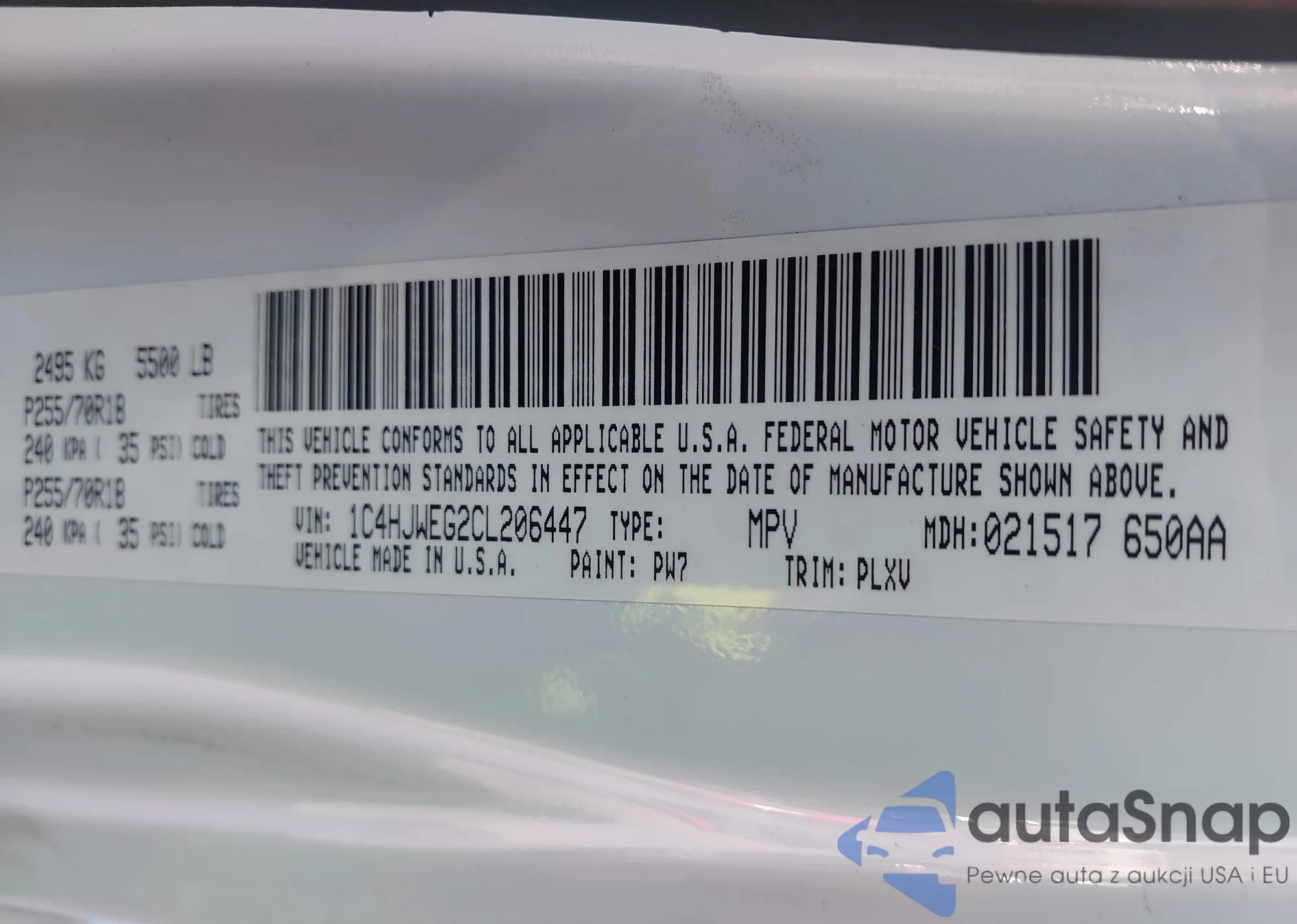 • VIN 1C4HJWEG2CL206447