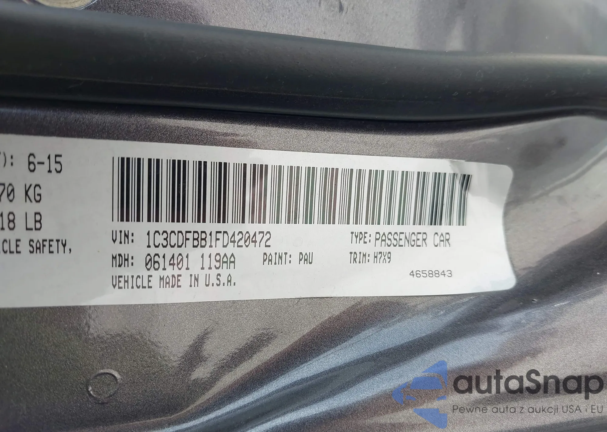 • VIN 1C3CDFBB1FD420472
