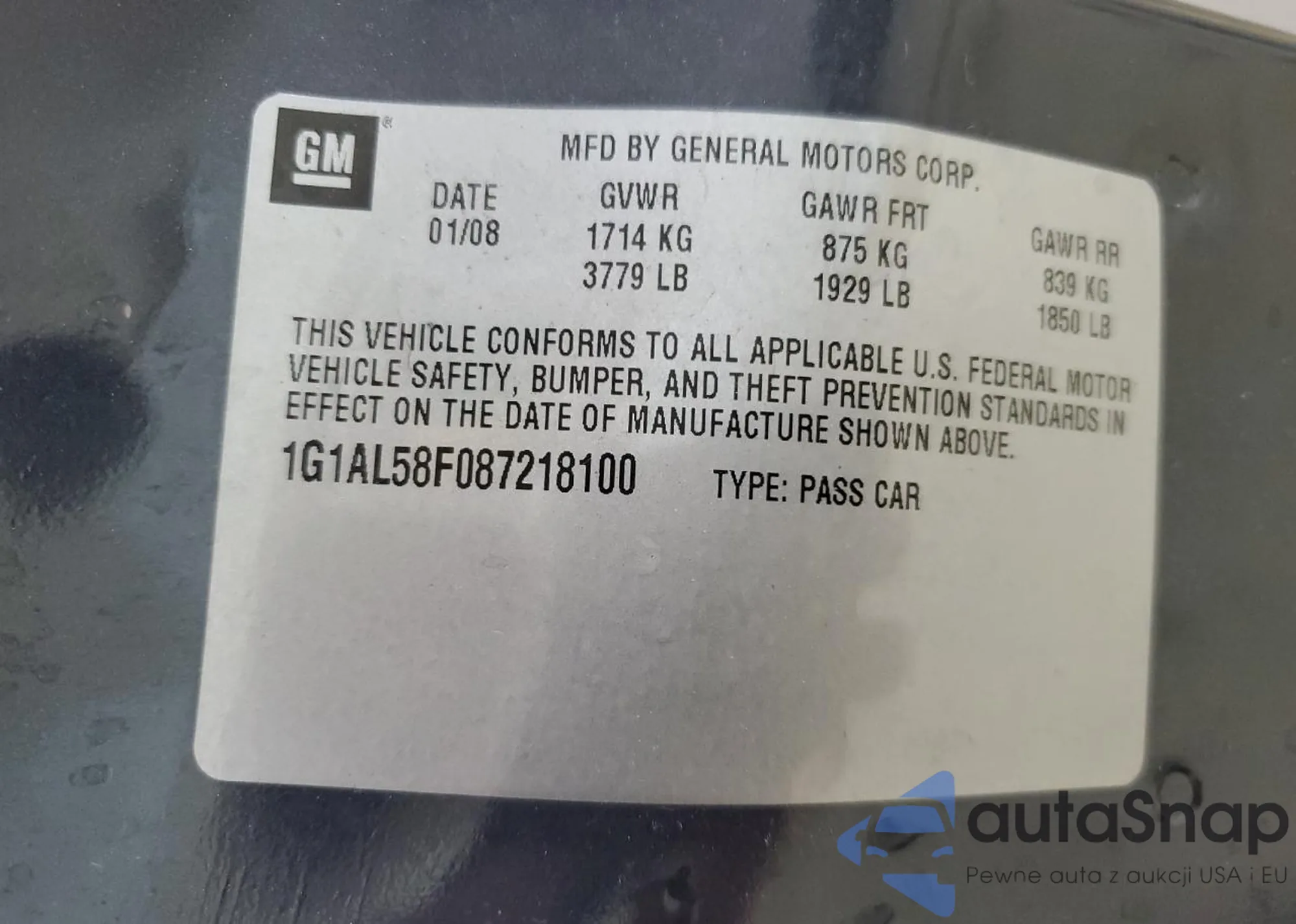 LOT: 61546955 VIN: 1G1AL58F087218100