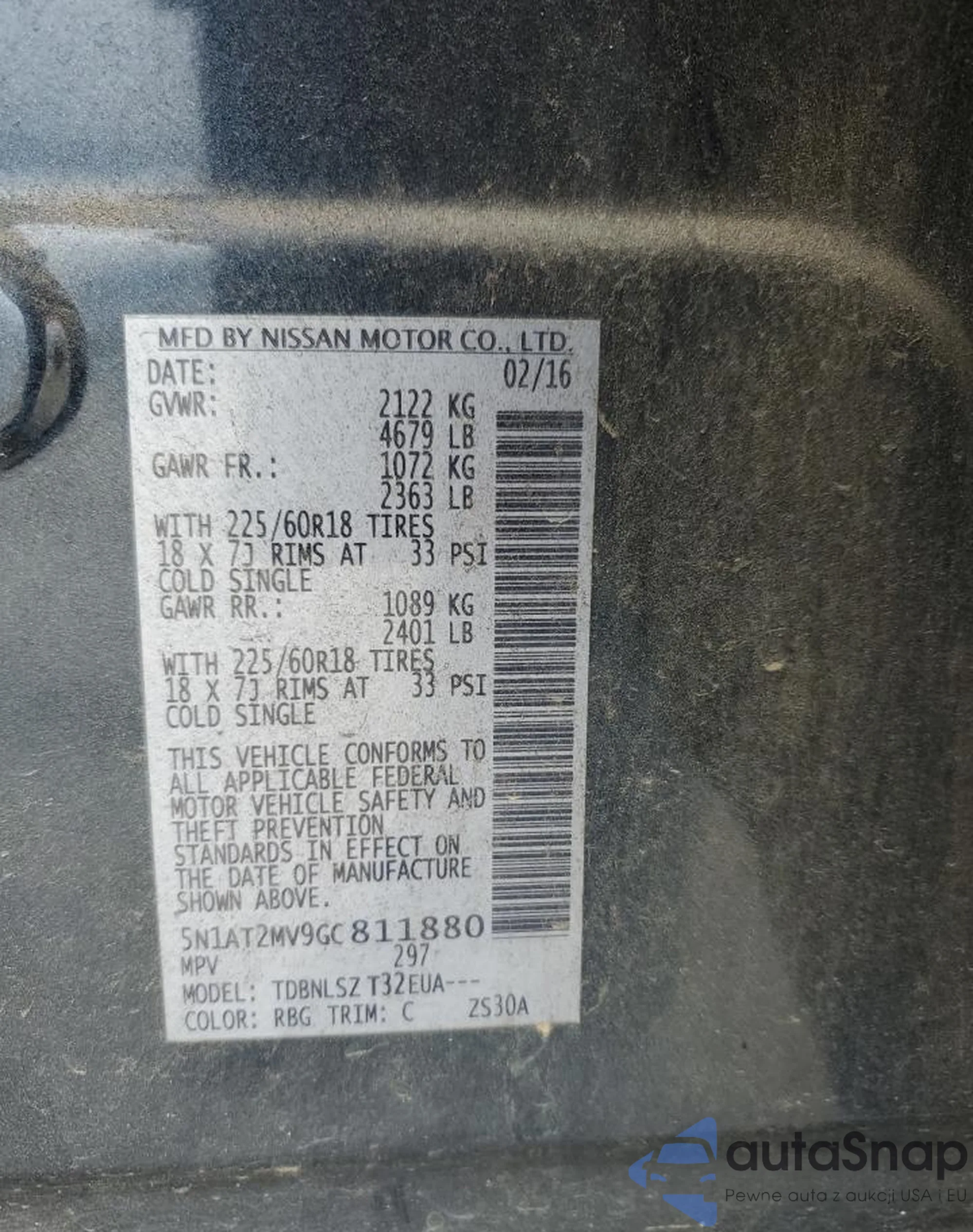 LOT: 60249235 VIN: 5N1AT2MV9GC811880