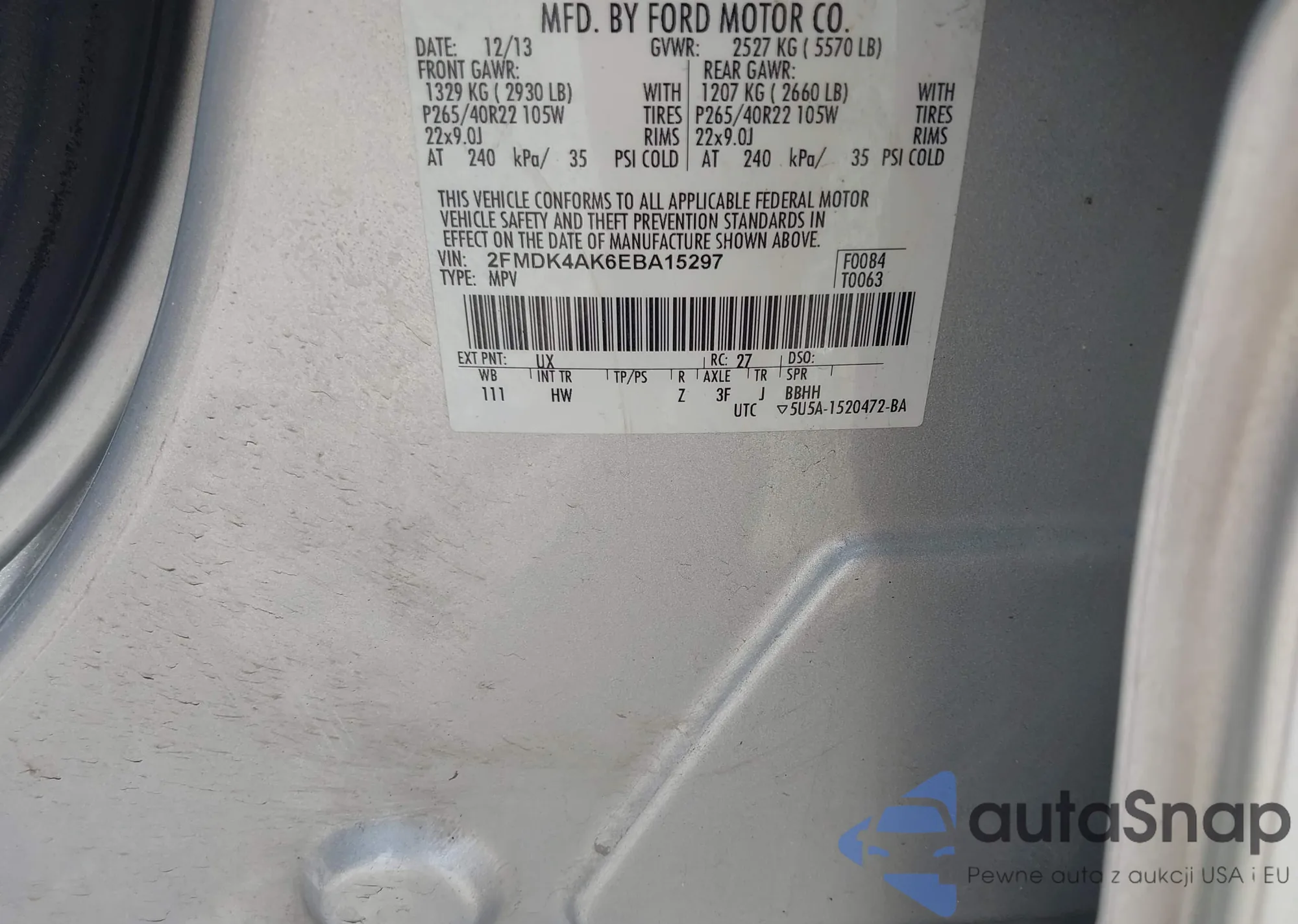 LOT: 42371536 VIN: 2FMDK4AK6EBA15297