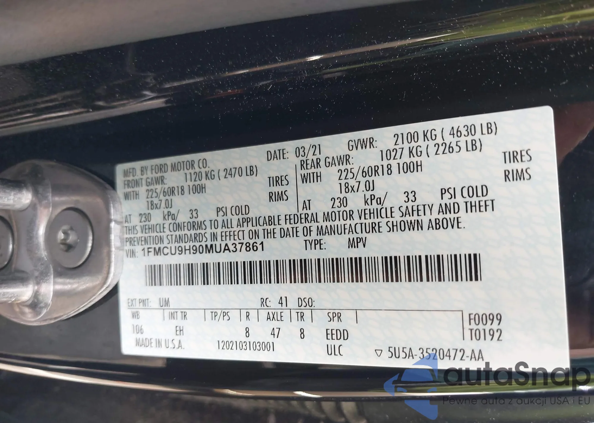 LOT: 42468492 VIN: 1FMCU9H90MUA37861