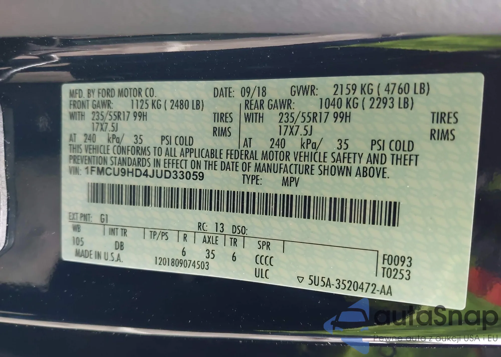 • VIN 1FMCU9HD4JUD33059