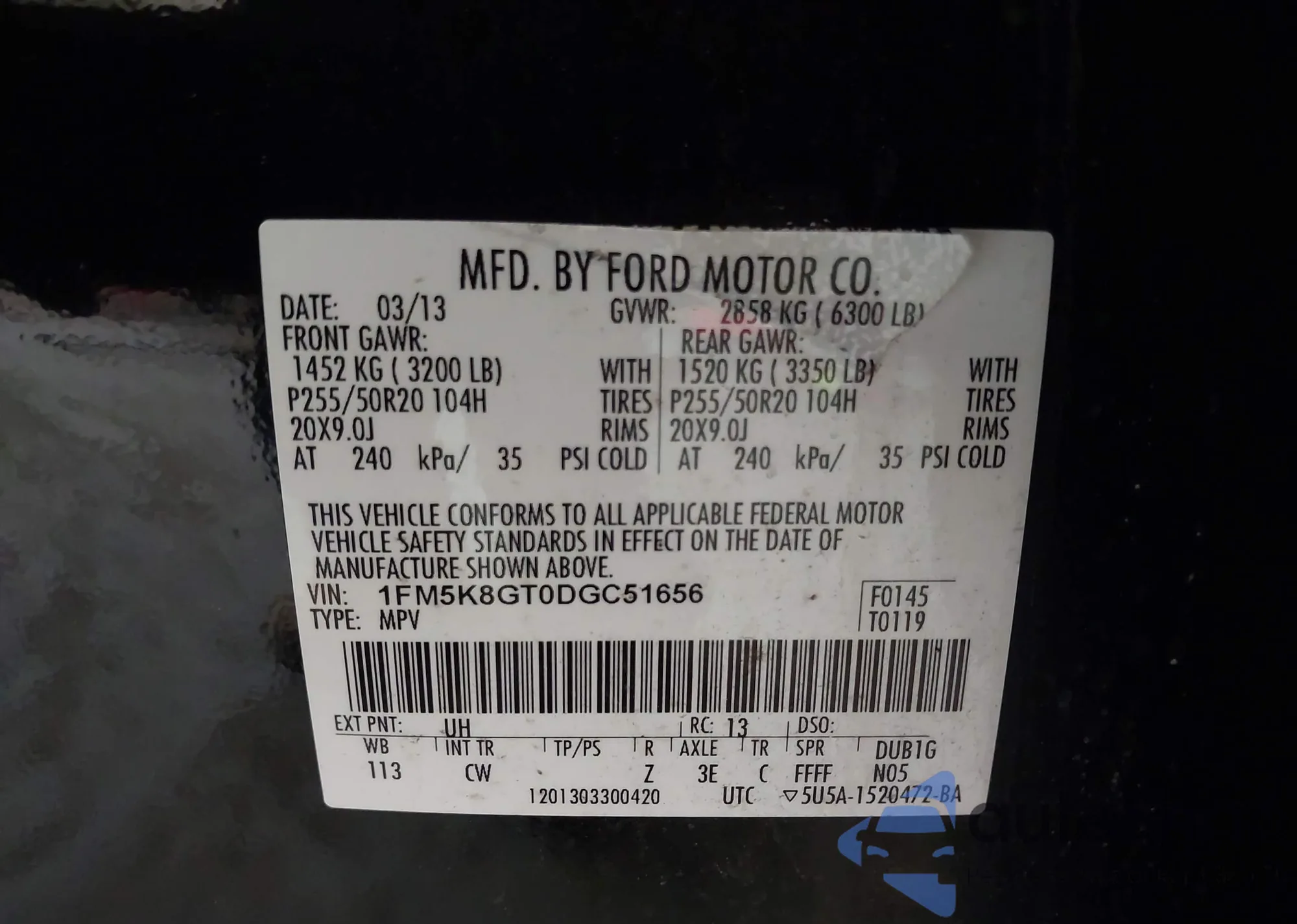 • VIN 2FMDK4KC9DBA00251