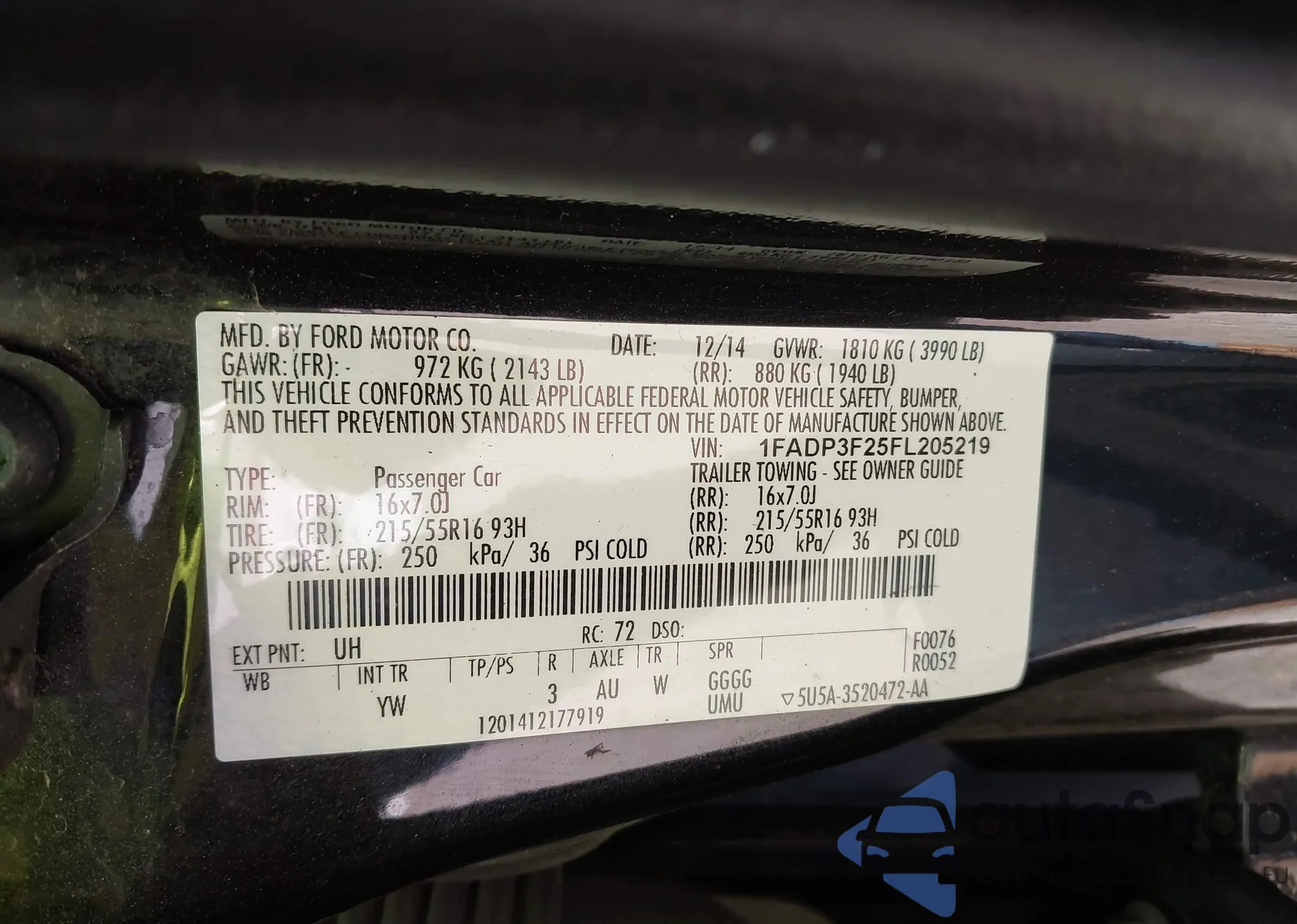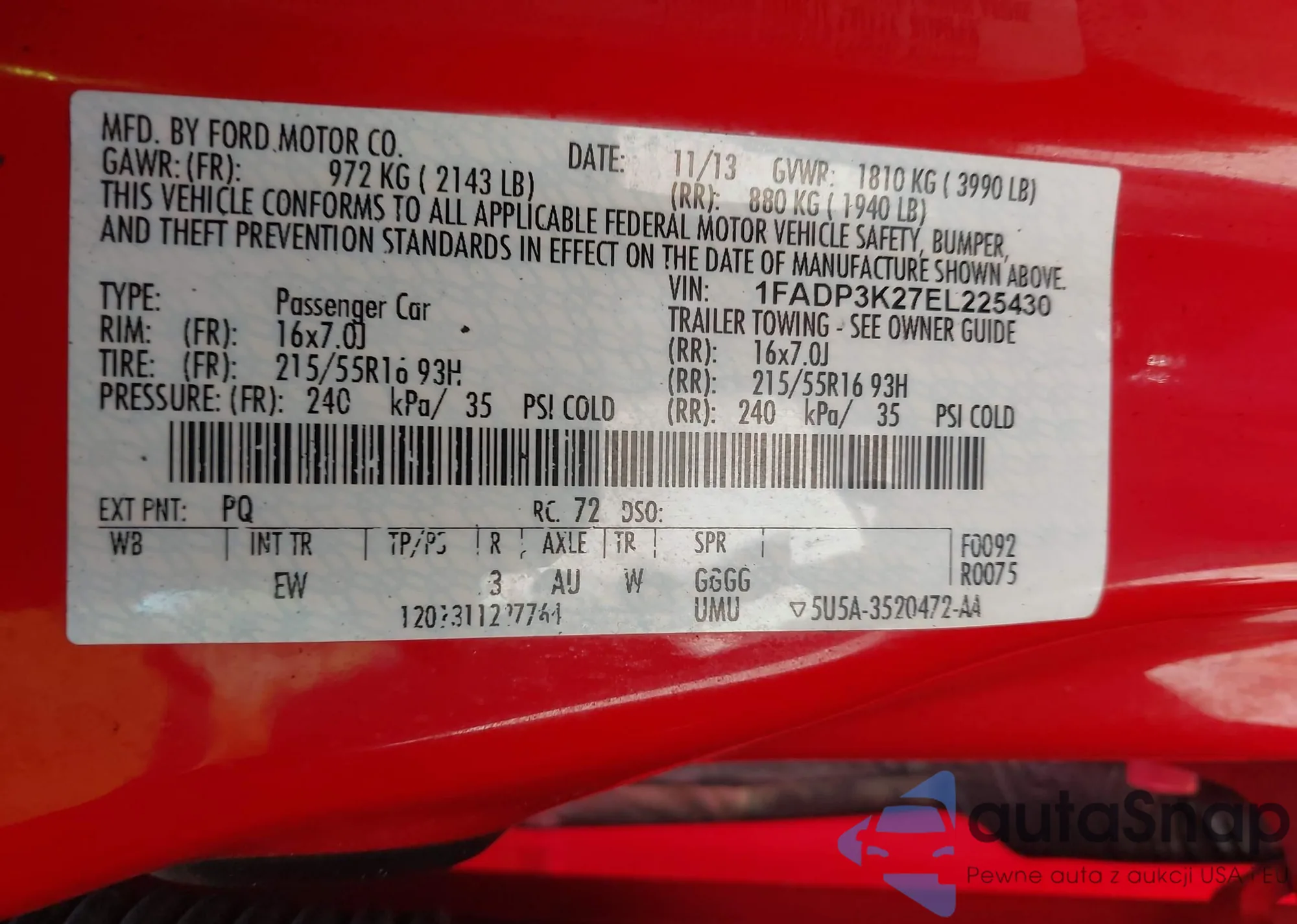 • VIN 1FADP3K27EL225430