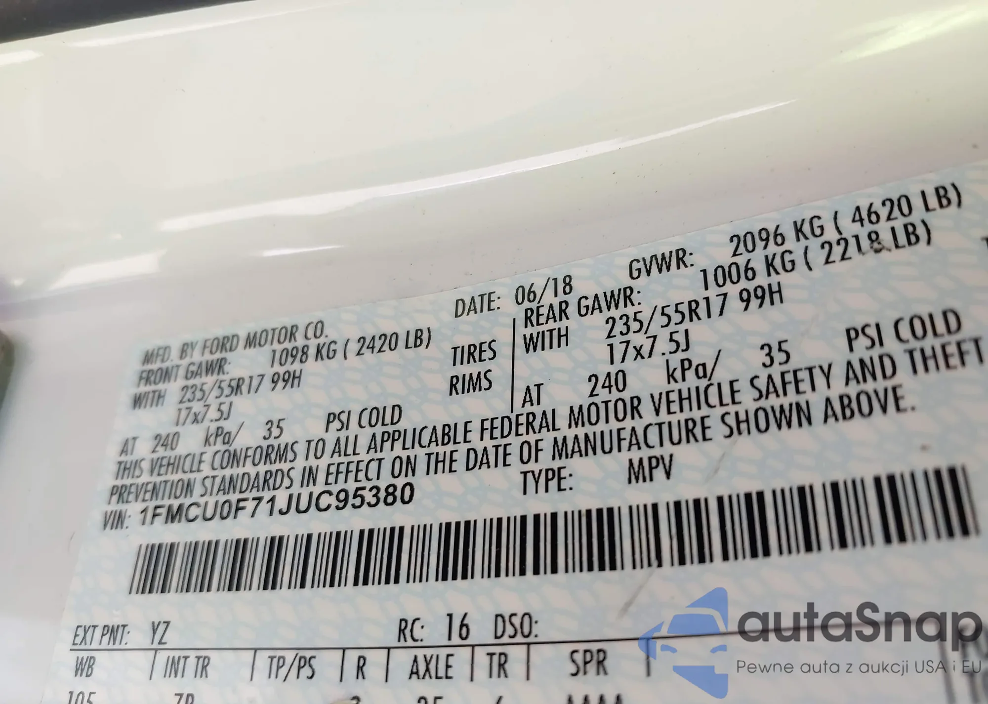 LOT: 42511585 VIN: 1FMCU9HD4JUD33059