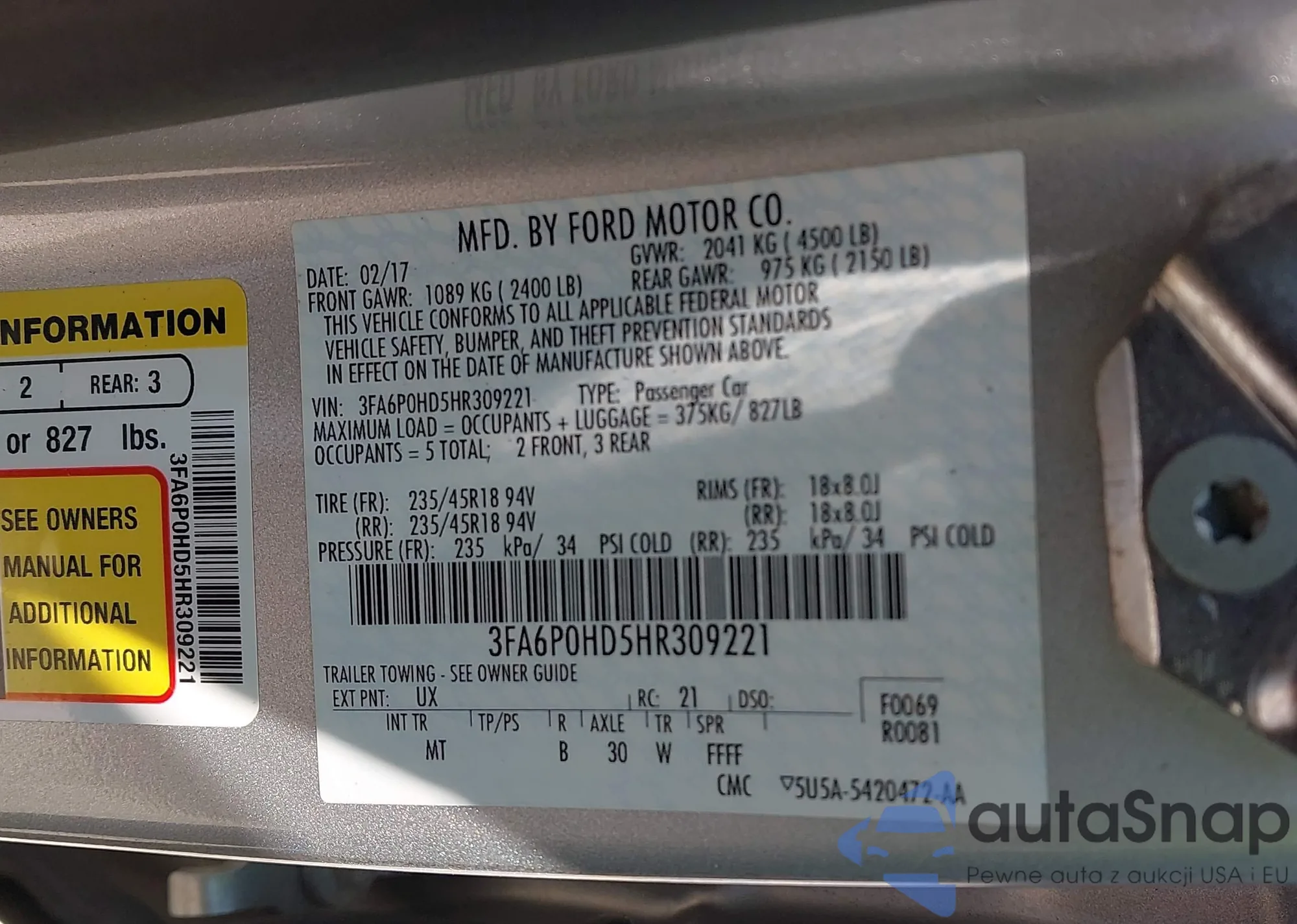 • VIN 3FA6P0HD5HR309221