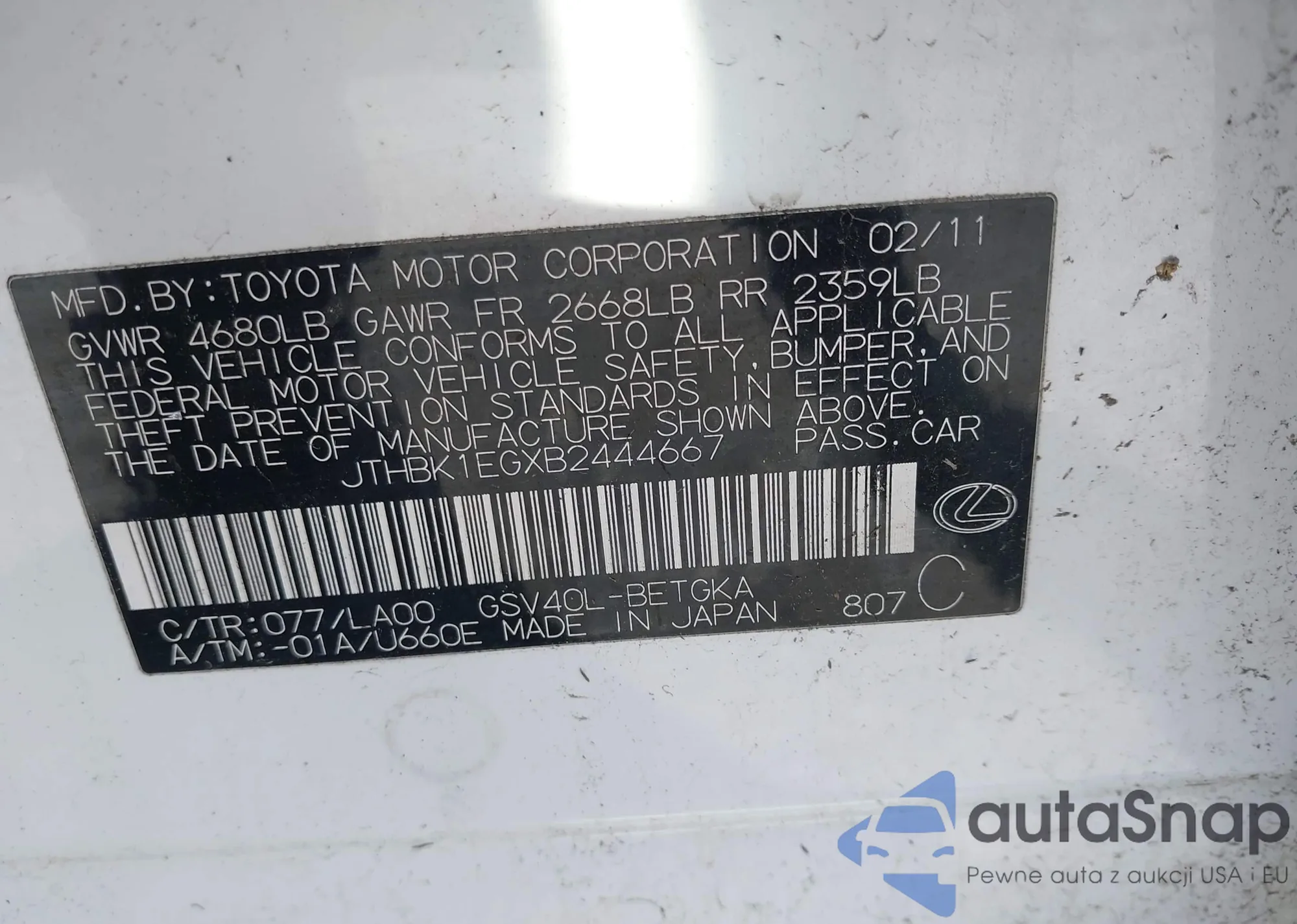 • Lot number 40772280