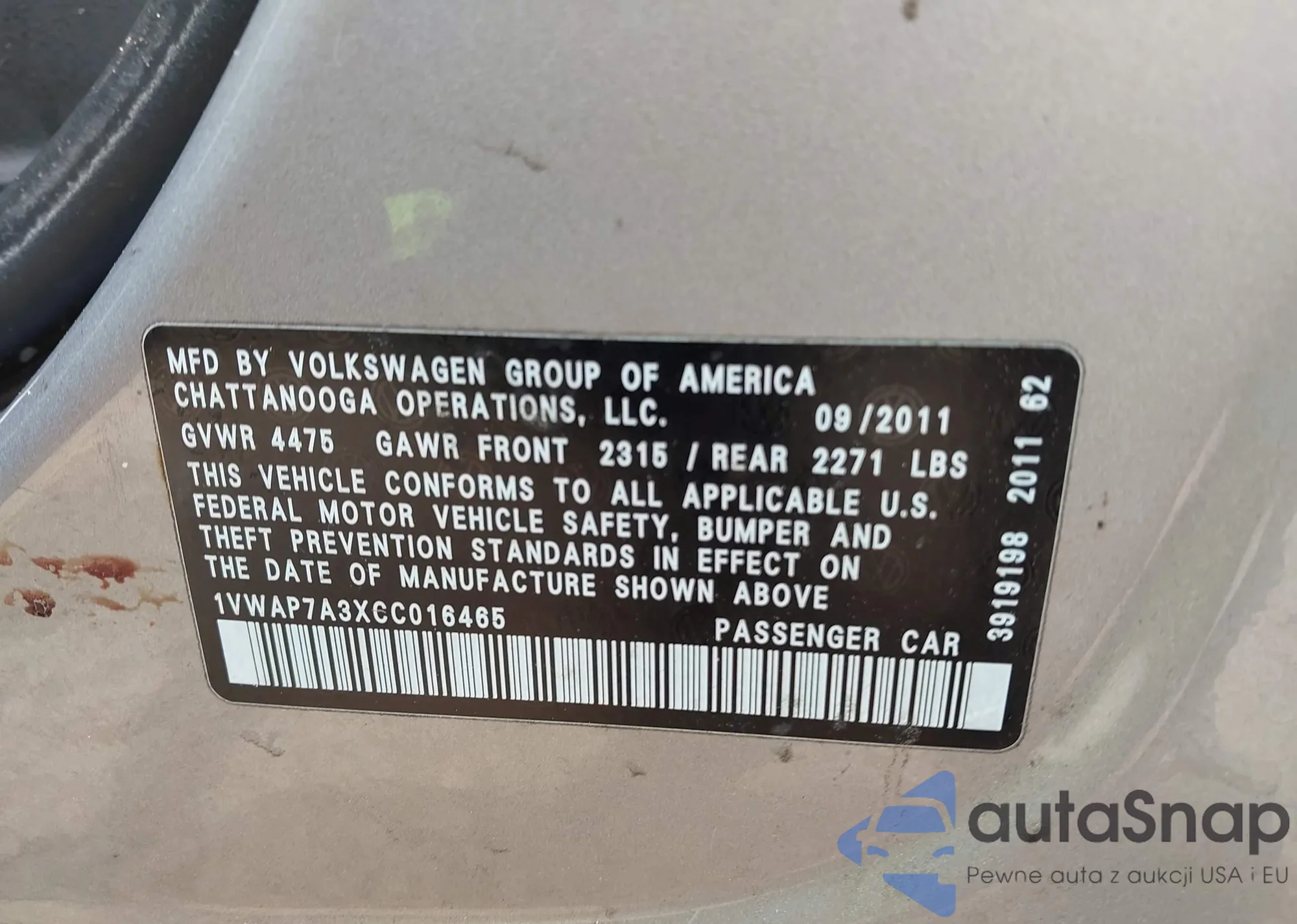 • VIN 1VWAP7A3XCC016465