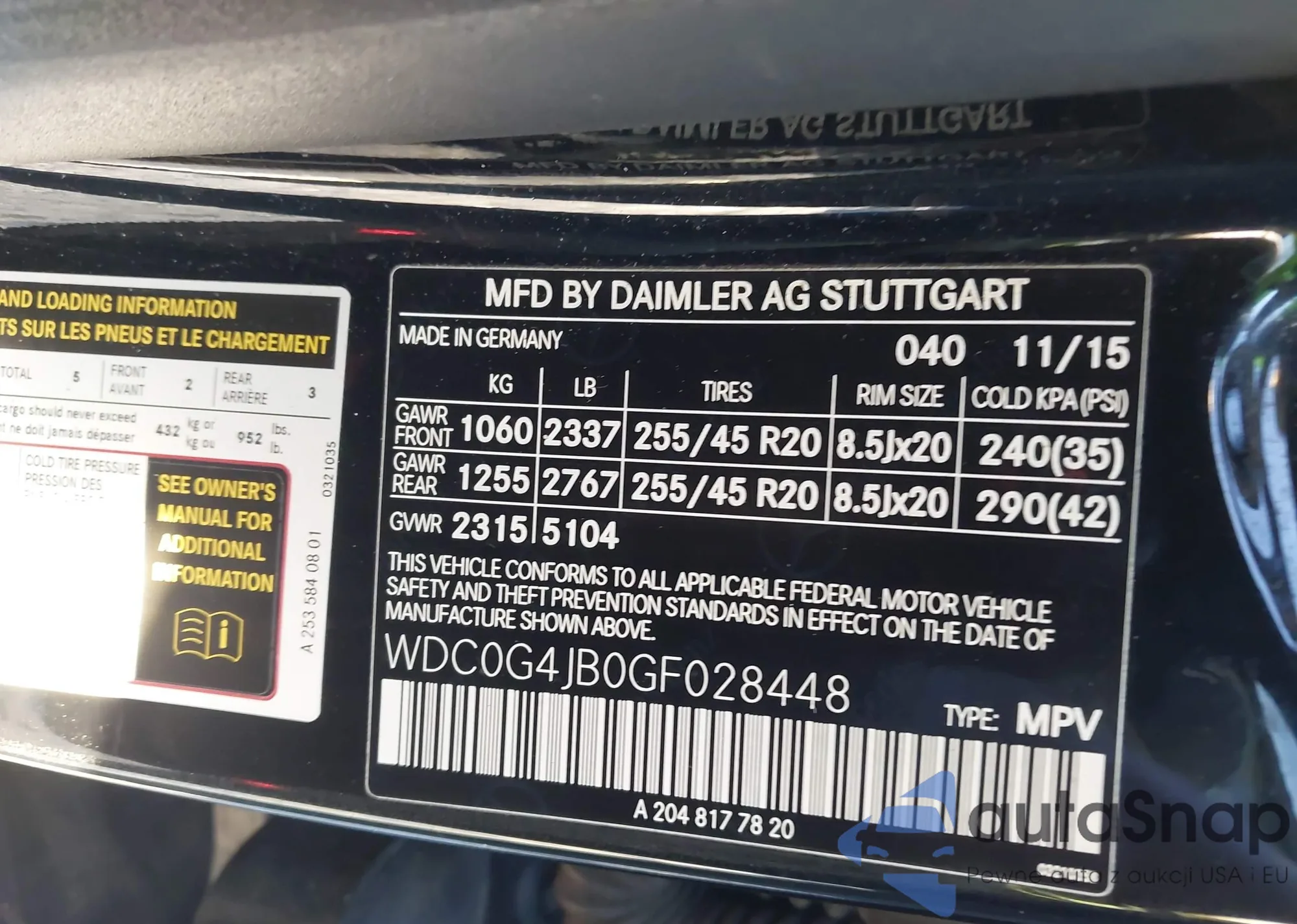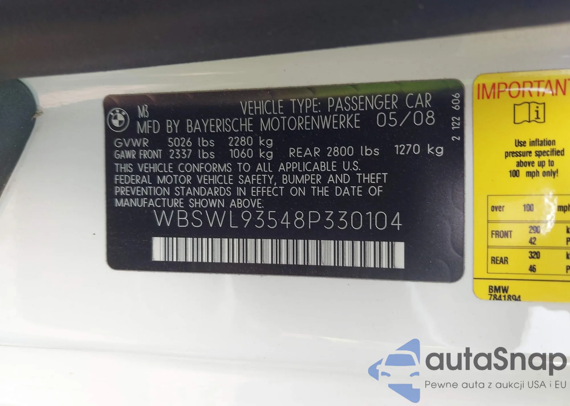 LOT: 42051576 VIN: WBSWL93548P330104