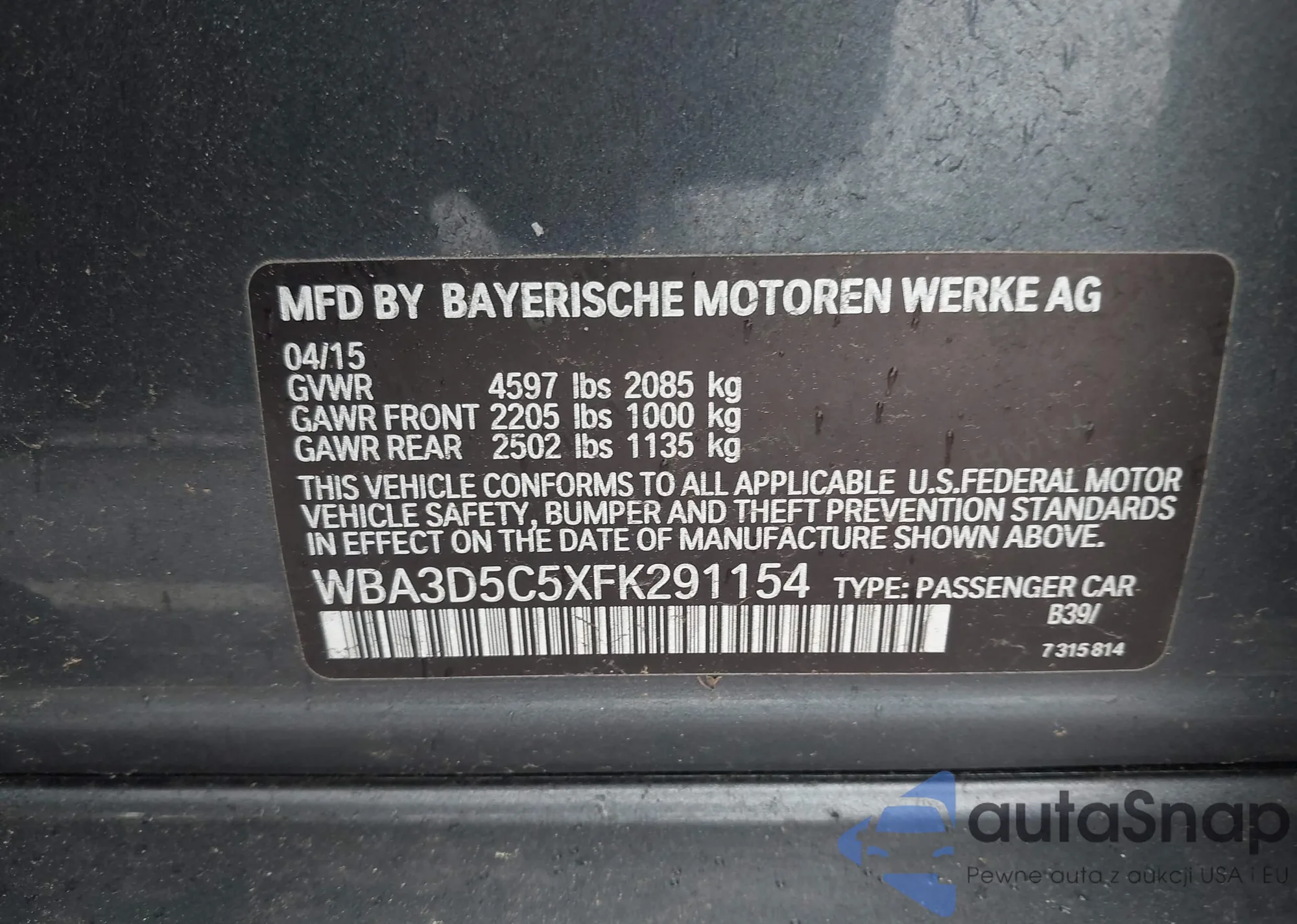 • VIN WBA3D5C5XFK291154