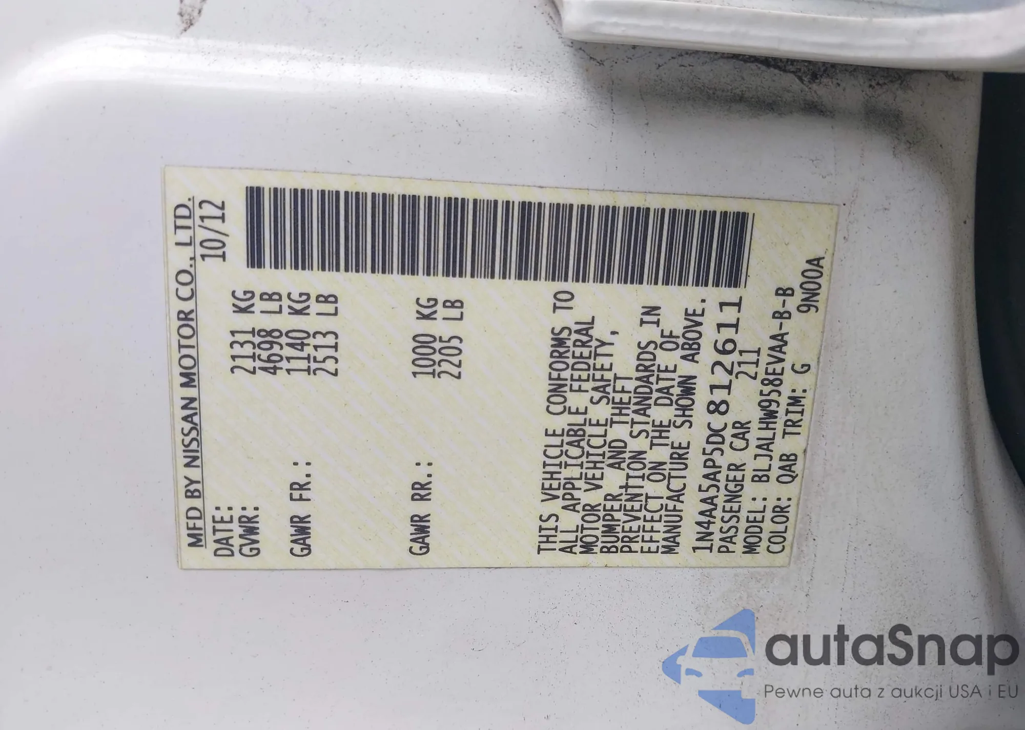 • VIN 1N4AA5AP5DC812611