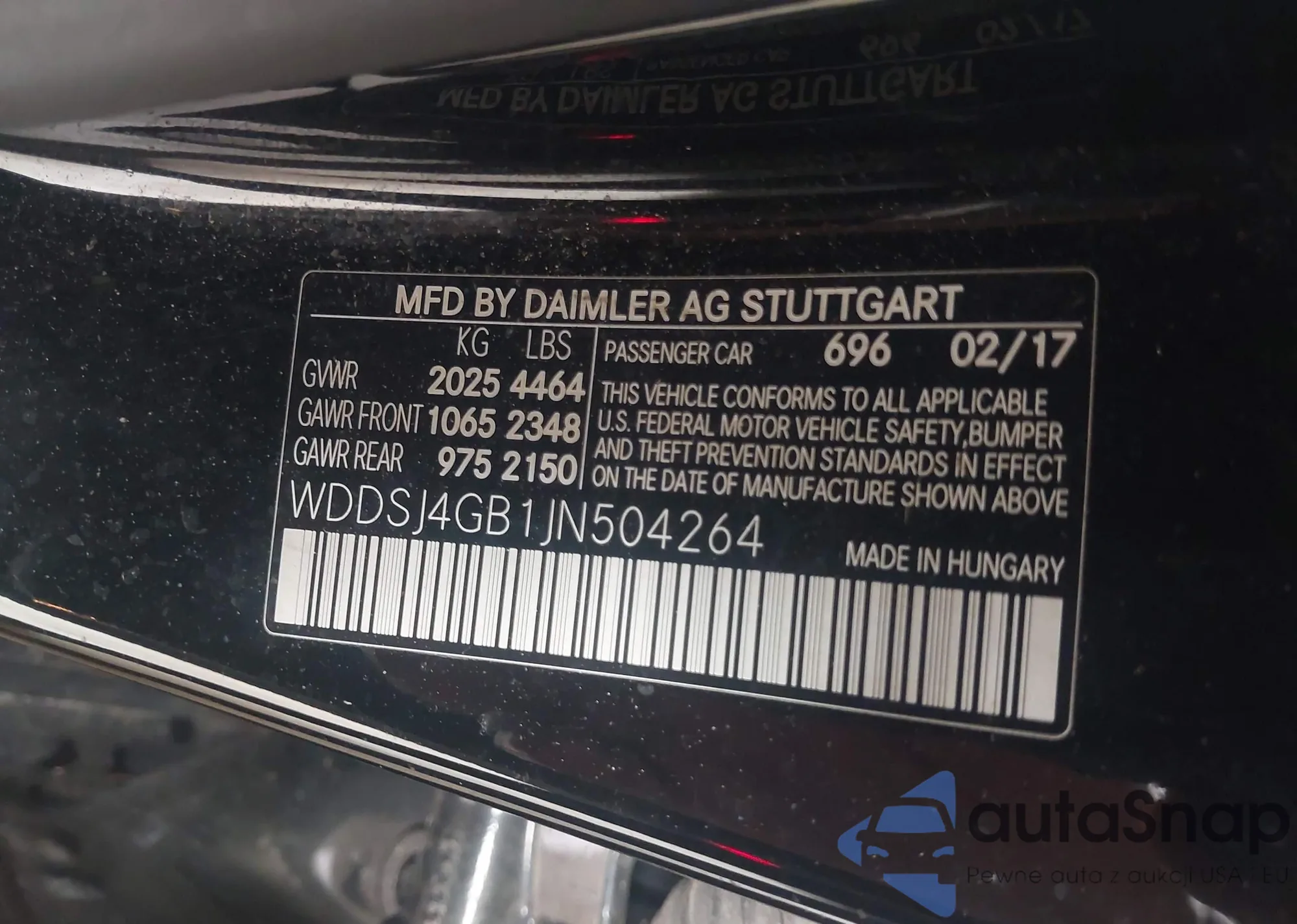 • VIN WDDSJ4GB1JN504264