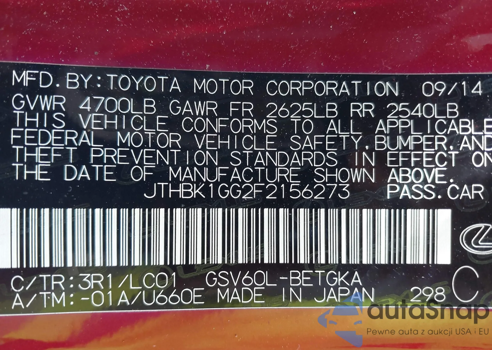 LOT: 42484517 VIN: JTHBE262X85017335