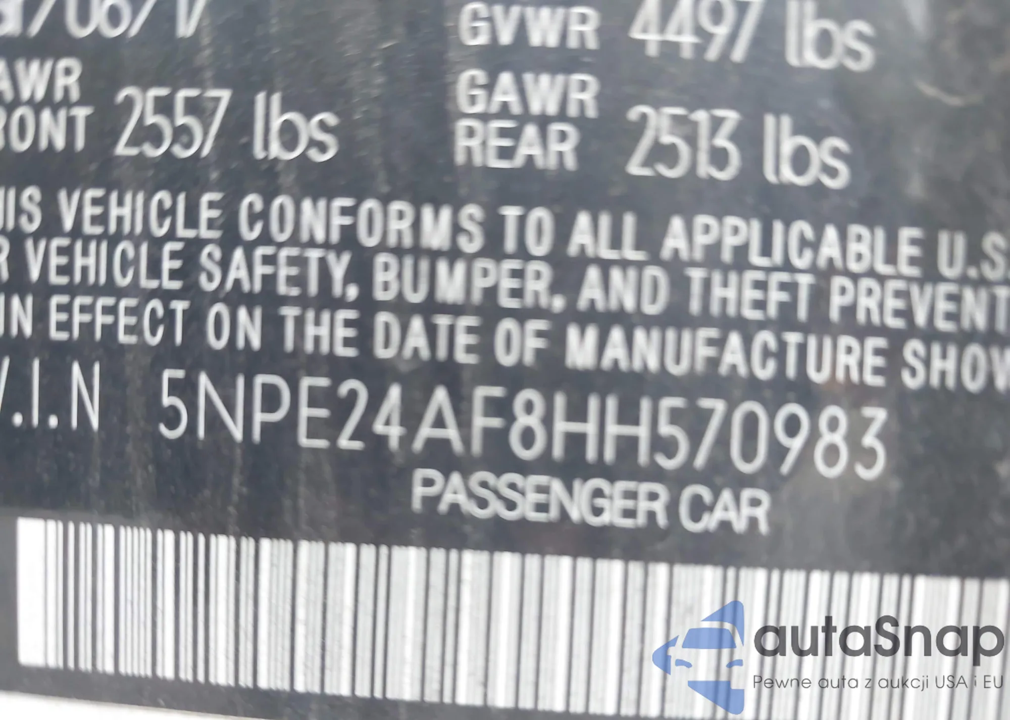 • VIN 5NPE24AF8HH570983
