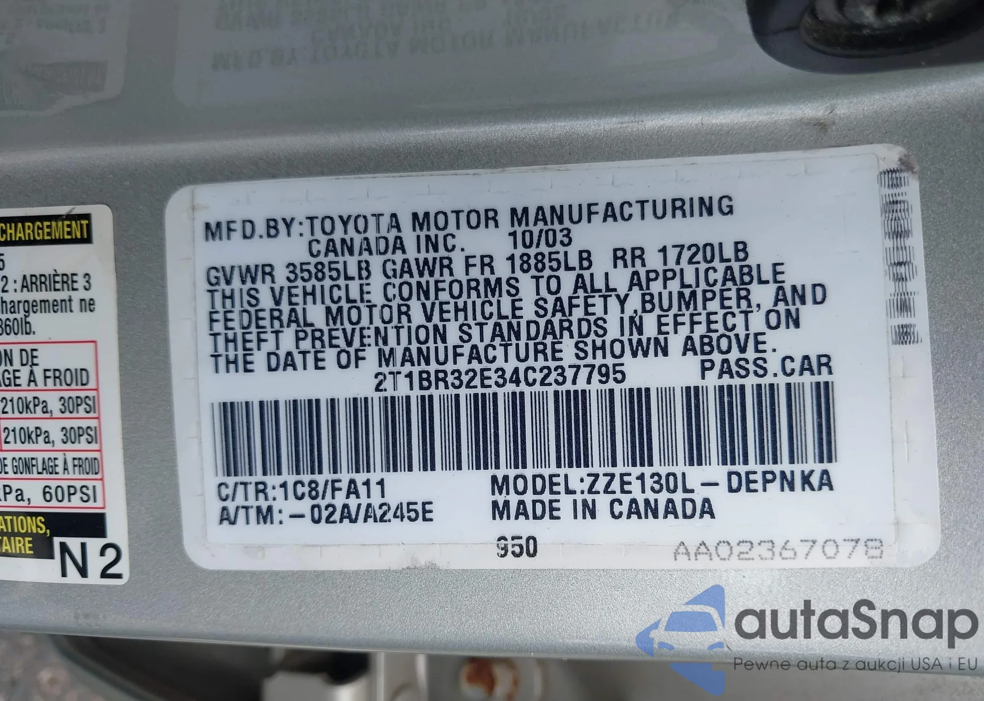 • VIN 2T1BR32E34C237795