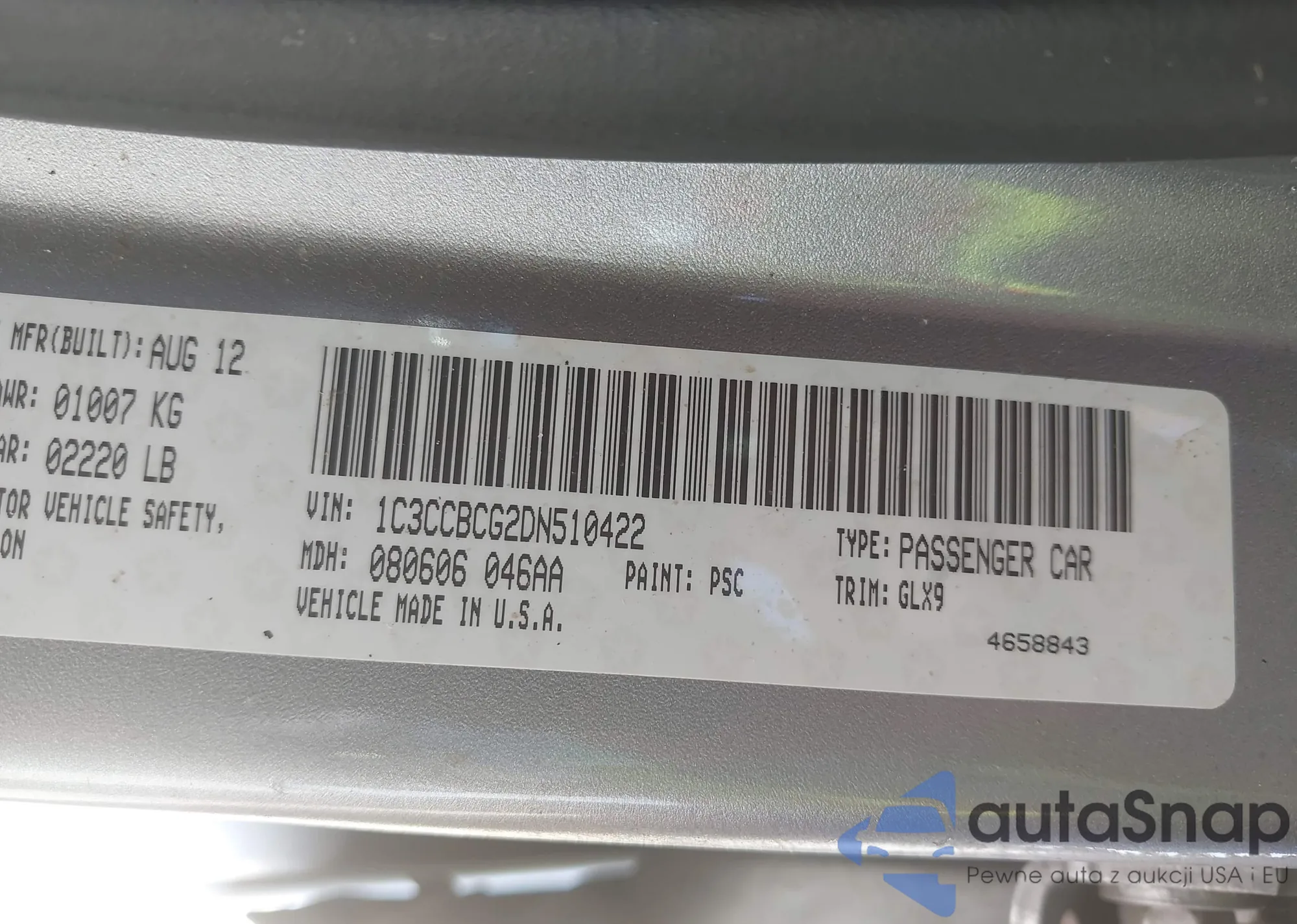 LOT: 42781528 VIN: 1C3CCBCG2DN510422