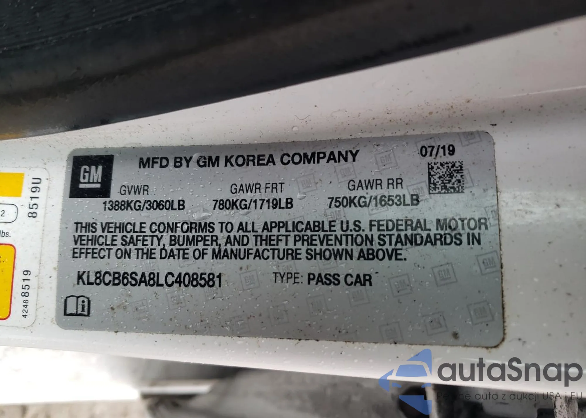 • VIN KL8CB6SA8LC408581