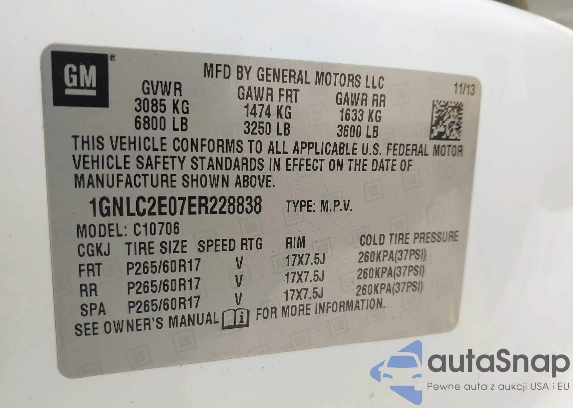 LOT: 42532551 VIN: 1GNFLCEK6DZ119399