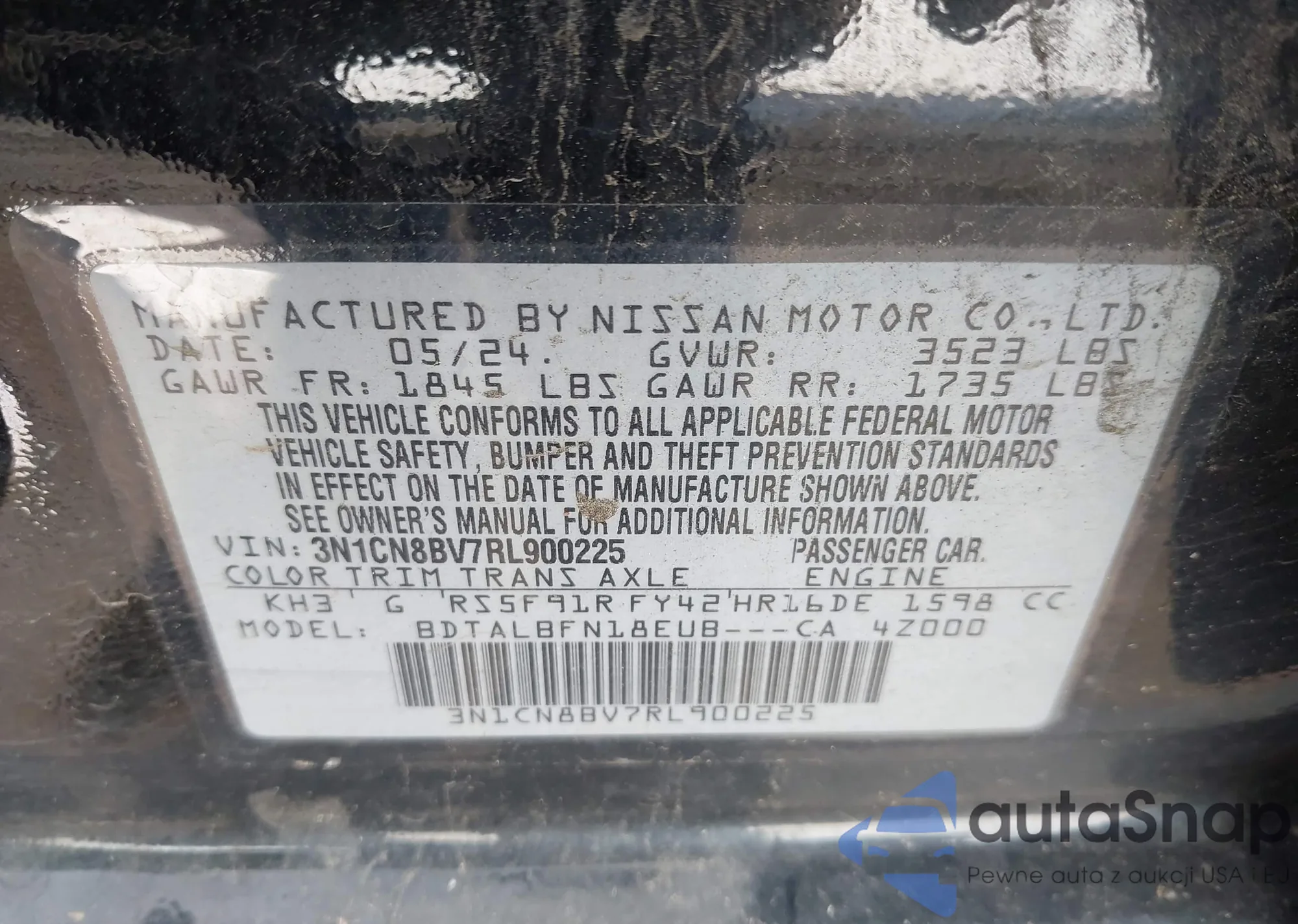 • VIN 3N1AB7AP0KY441450