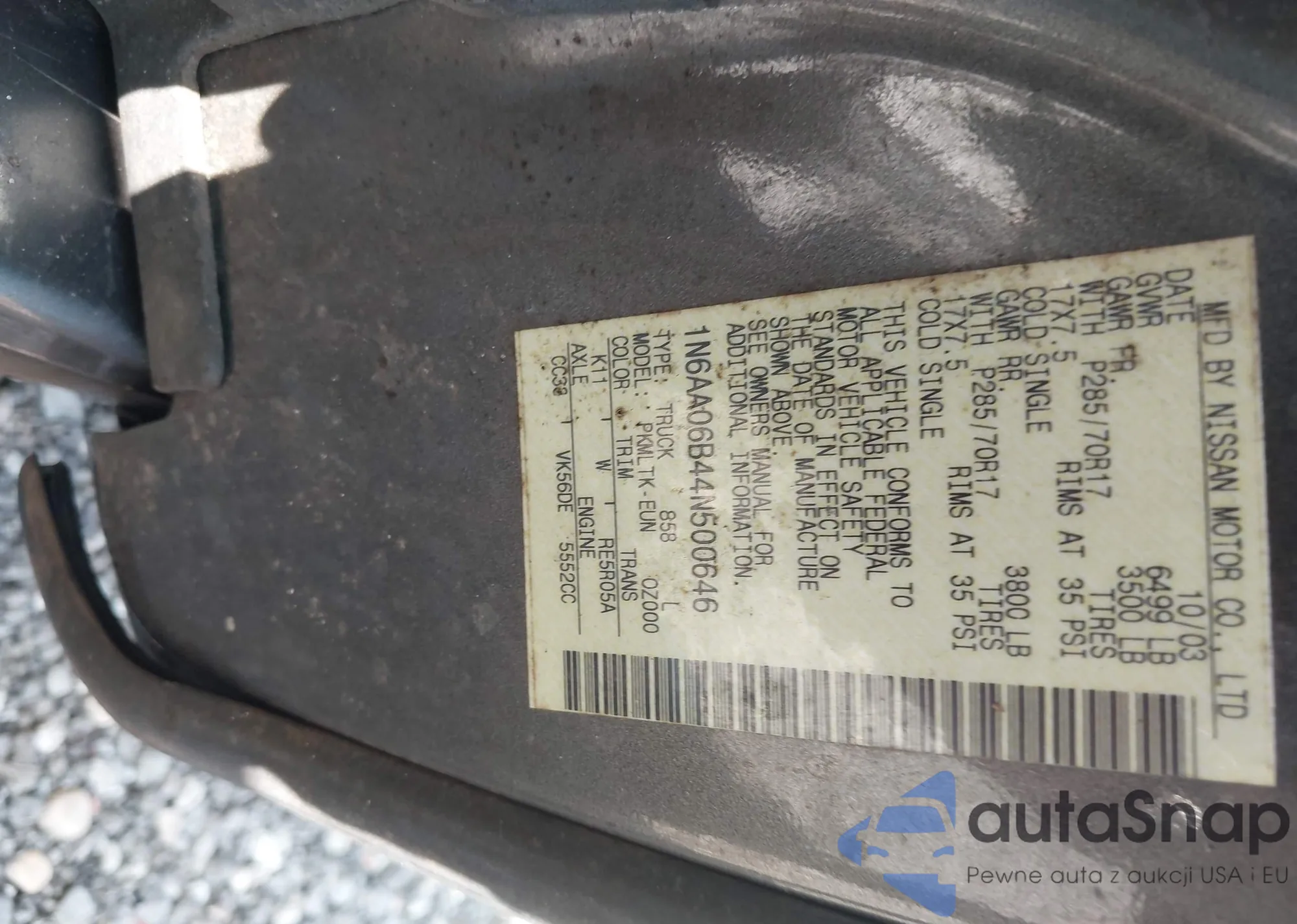 • VIN 1N6AA06B44N500646