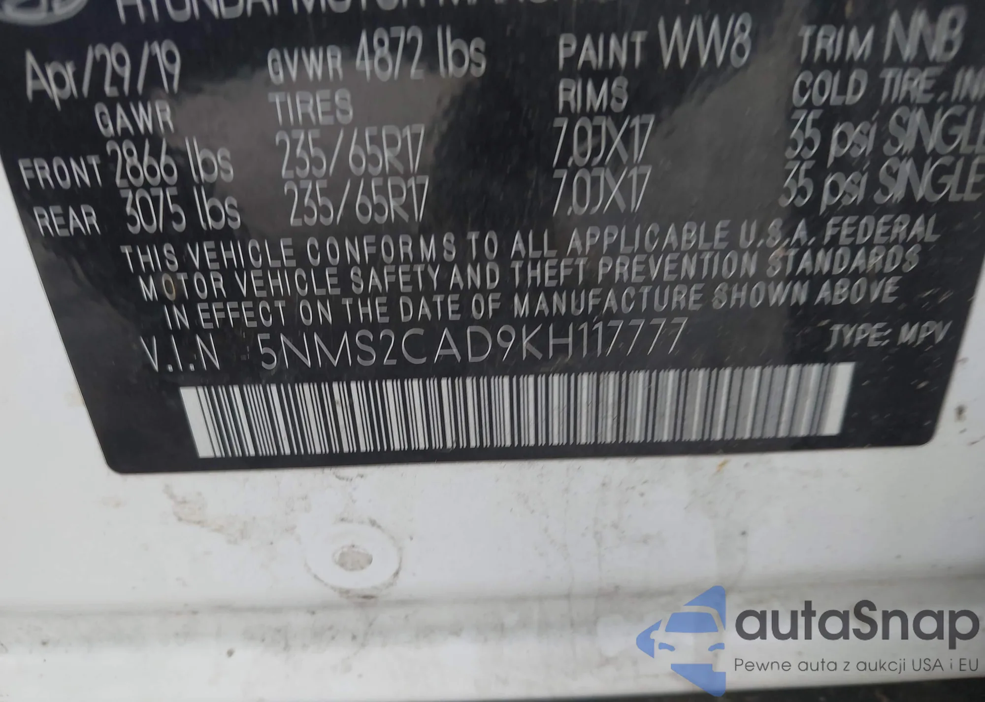 • VIN 5NMS2CAD9KH117777