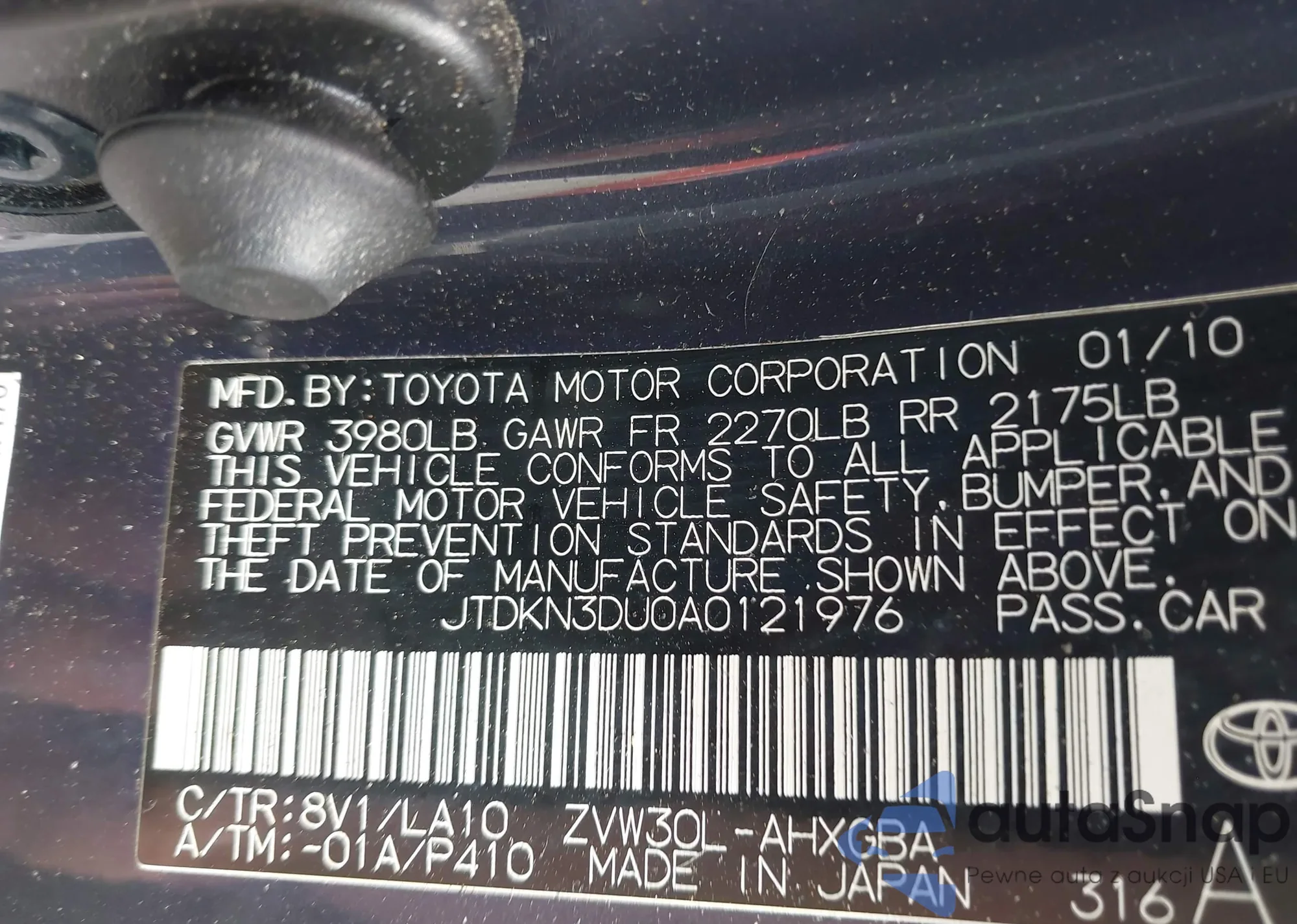 LOT: 42429614 VIN: JTDKN3DU0A0121976
