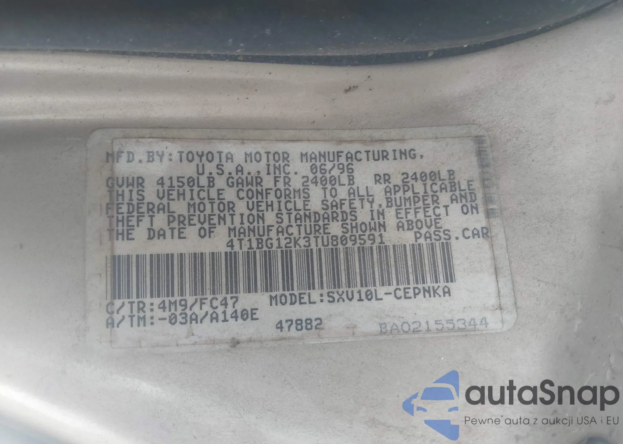 LOT: 42501811 VIN: 4T1BG12K3TU809591