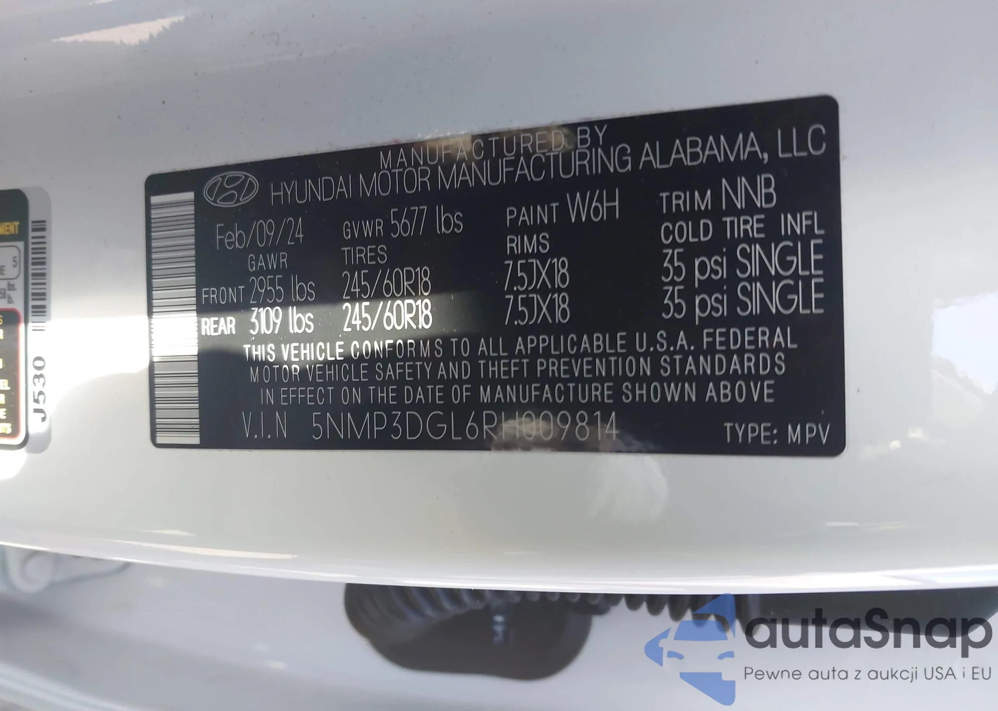 LOT: 42137019 VIN: 5NMP3DGL6RH009814
