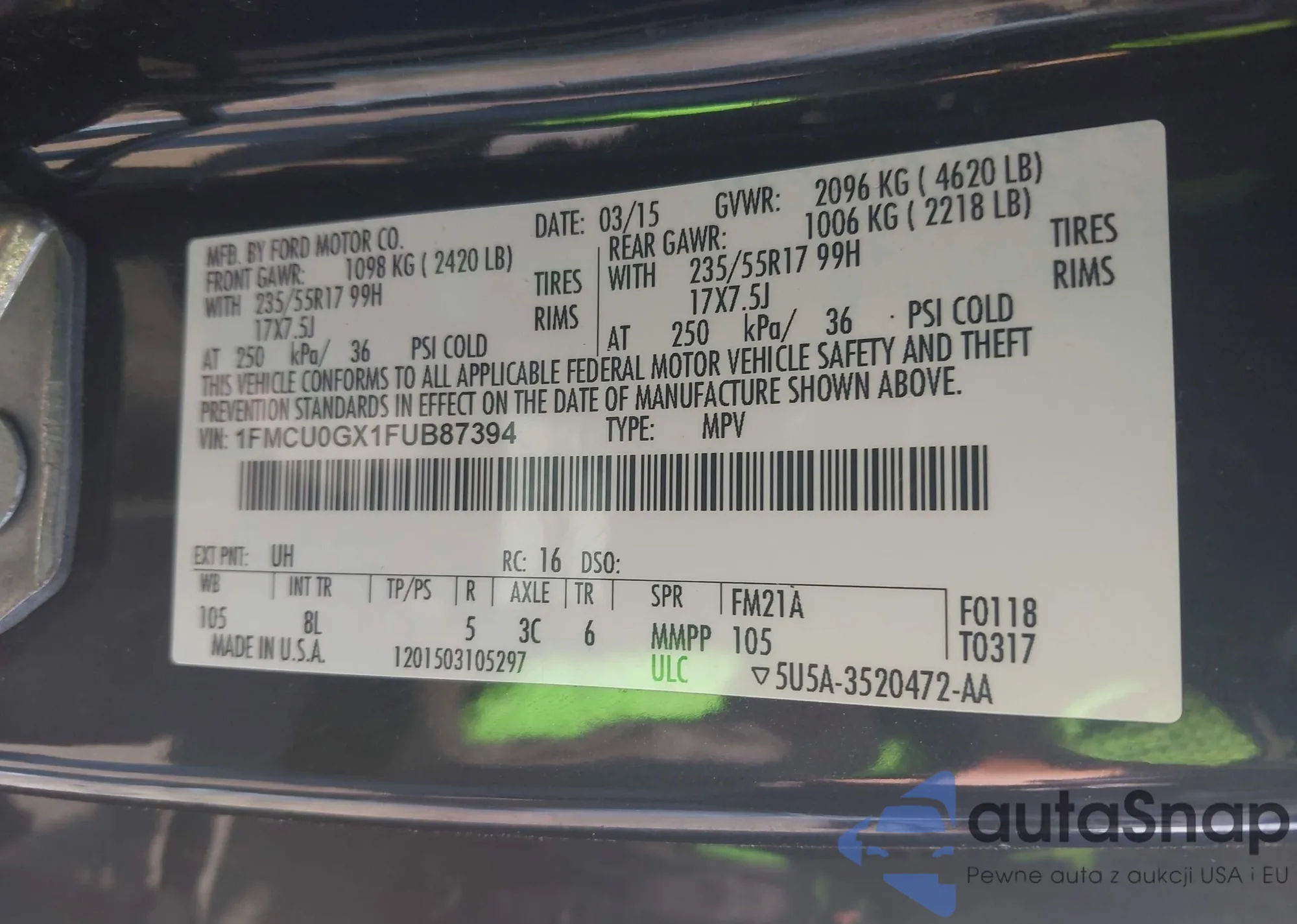 • VIN 1FMCU0GX1FUB87394