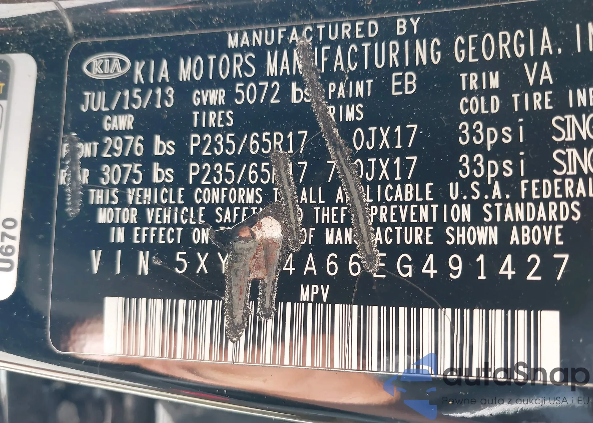 • VIN 5XYKT4A66EG491427