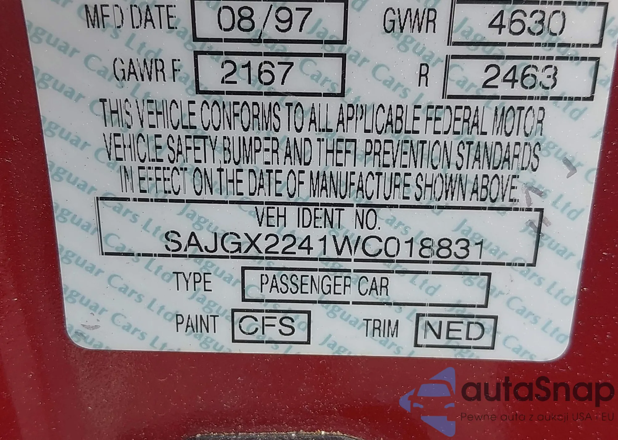 LOT: 42627362 VIN: SAJGX2241WC018831
