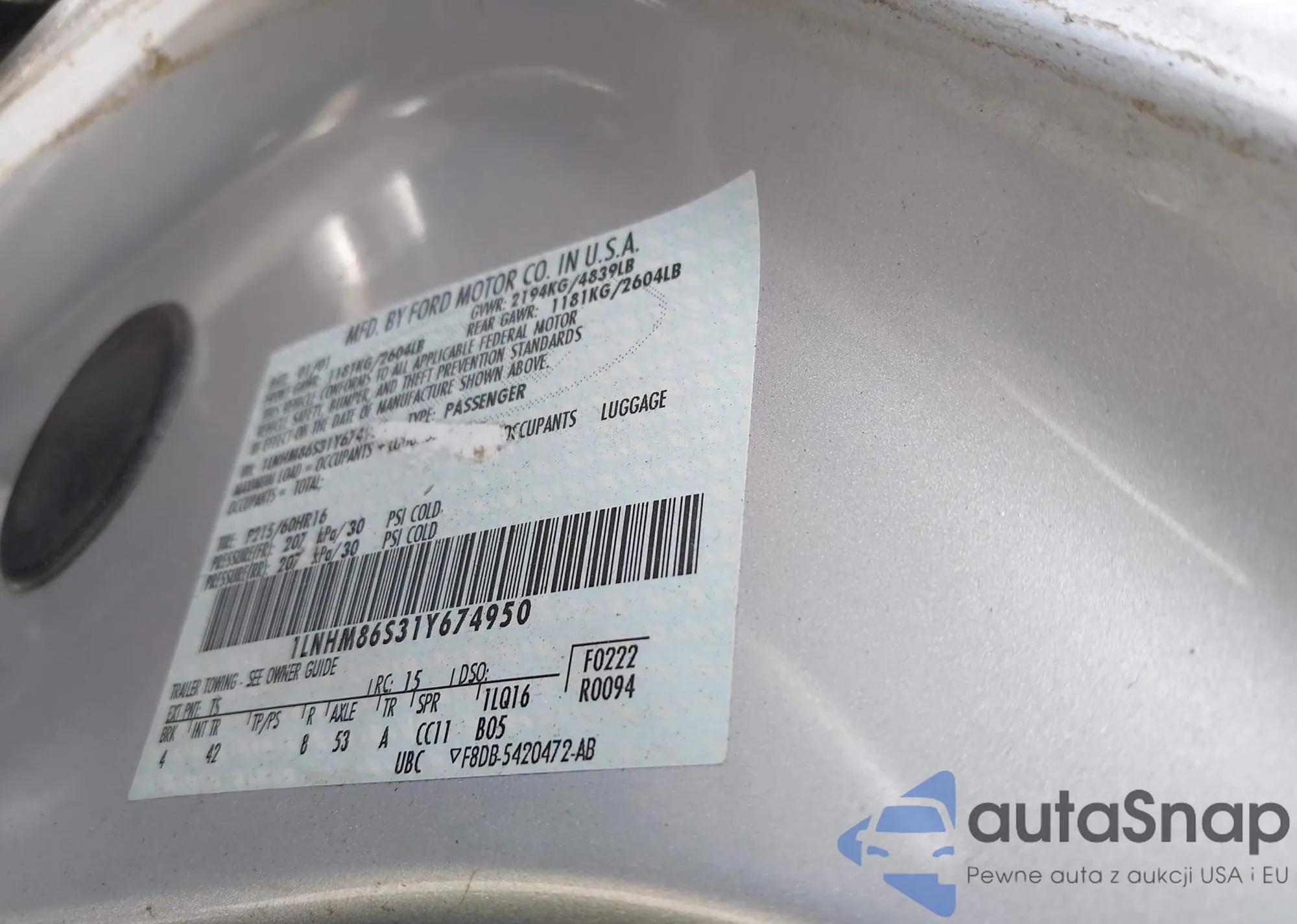 • VIN 1LNHM86S31Y674950